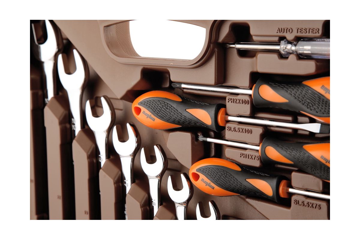 Каждый инструмент имеет персональное место в кейсе. Всё расположено удобно и наглядно.
