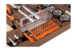 OMBRA OMT88S – универсальный набор инструментов для крепежных, монтажных и прочих ремонтно-строительных работ. В состав комплекта входит 88 предметов. Принадлежности расположены в транспортировочном кейсе с широкой ручкой. Вес модели – 7,4 кг.