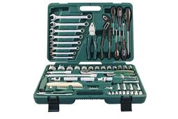 Большой выбор принадлежностей: в комплект входят отвертки, биты, гаечные ключи, молоток, торцевые головки, пассатижи, переставные клещи, комбинированные ключи и многие другие принадлежности.