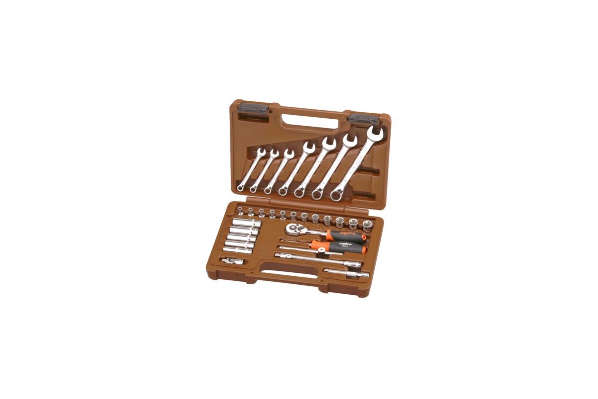 OMBRA OMT30S – набор комбинированных ключей и торцевых головок для профессионального использования. Применяется для ремонта небольшой техники, арматурных работ, установке навесного оборудования. Эргономичные рукоятки позволяют выполнять необходимые действия, не нагружая руки. Для удобства пользователя комплект поставляется в кейсе. Вес набора –1,5 кг.