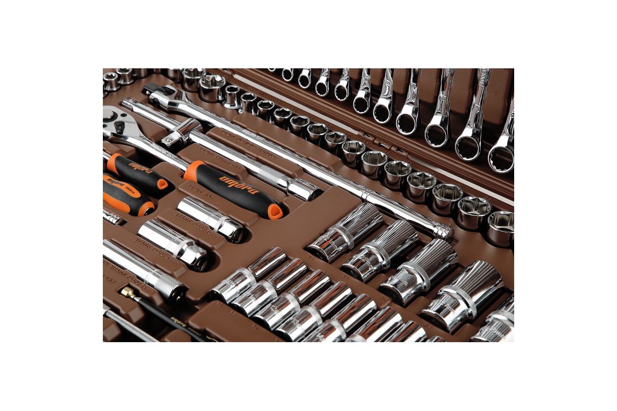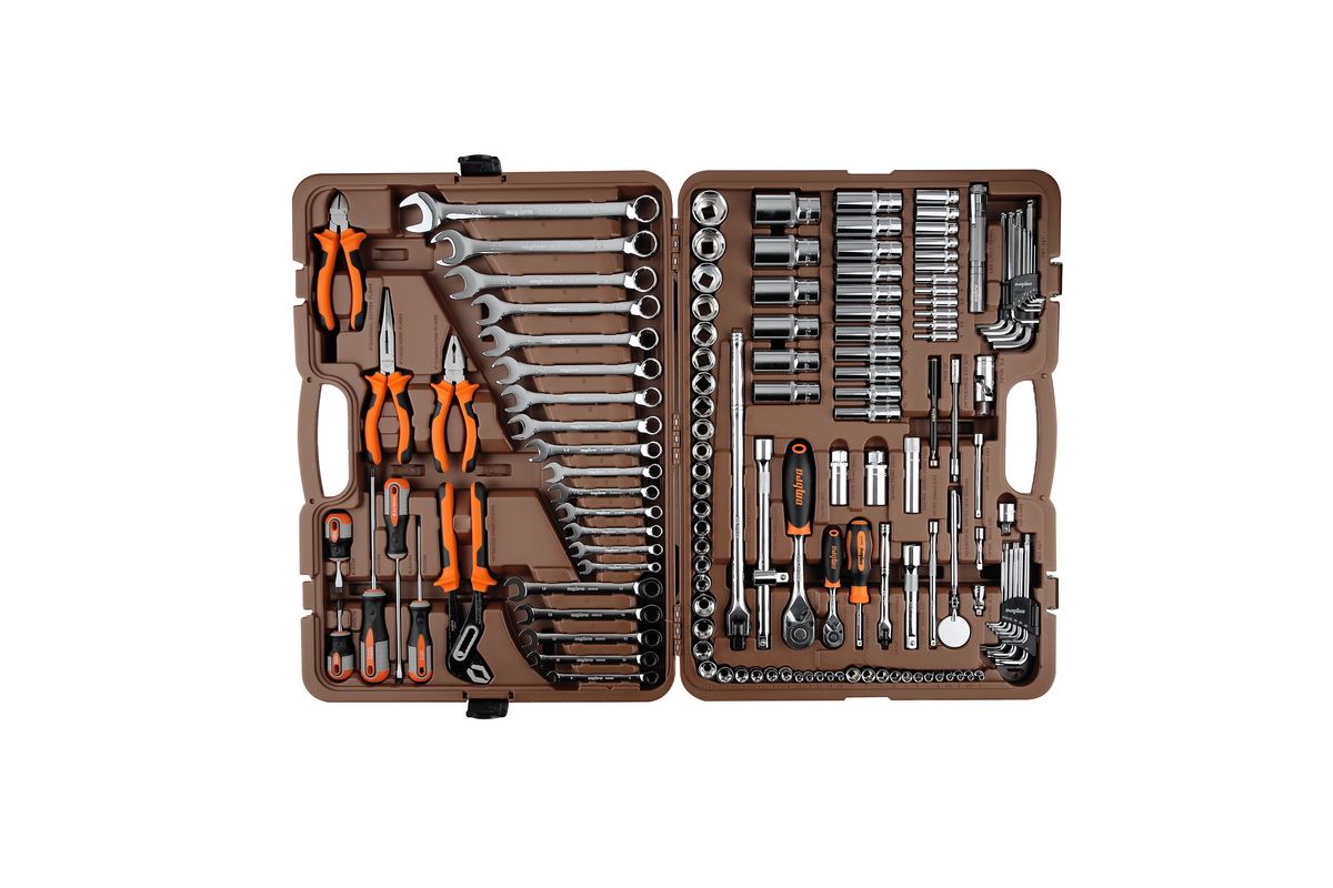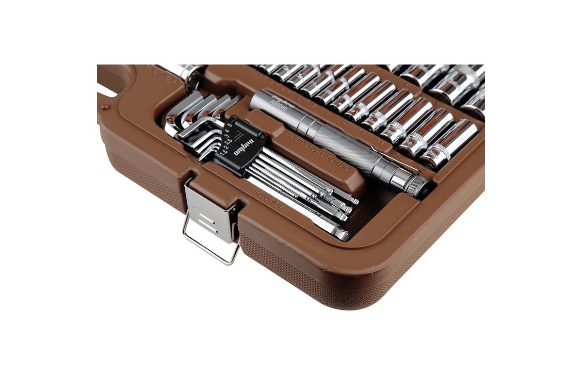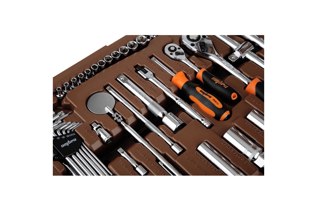 Набор инструментов OMBRA OMT141S — включает в себя 141 предмет. Используется для широкого спектра задач, но все-таки основным предназначением остаются авторемонтные работы. Популярен как среди мастеров-любителей, так и профессионалов. Помимо традиционных инструментов, рассчитанных на высокую нагрузку и работы в труднодоступных местах, в комплект входят: карманный фонарик, инспекционное телескопическое зеркало и магнитная рукоятка.