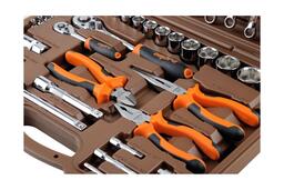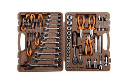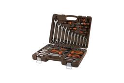 OMBRA OMT55S – набор инструментов для профессионалов. Предназначен для ремонтных и крепежных работ. В состав набора входит 55 компактно размещенных предметов. Комплект поставляется в удобном транспортировочном кейсе с широкой рукояткой. Вес модели – 8 кг.