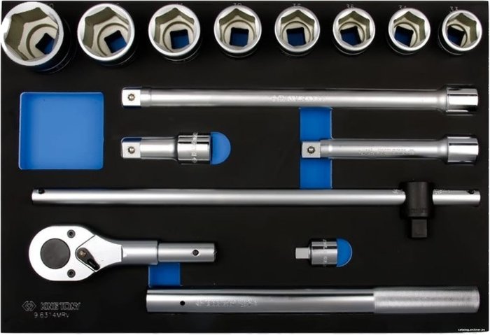 - Комплектация - 8 торцевых стандартных шестигранных головок с посадкой 3/4" серии 6335M 33, 34, 35, 36, 38, 41, 46, 50 мм;- 3 удлинителя с посадкой 3/4" серии 6251 100, 200, 400 мм;- Скользящий вороток 3/4" серии 6572-20 500 мм;- Переходник серии 6814 3/4">1/2";- Флажковая трещотка 3/4" серии 6779-20F 24 зубца, 500 мм;- Ложемент.