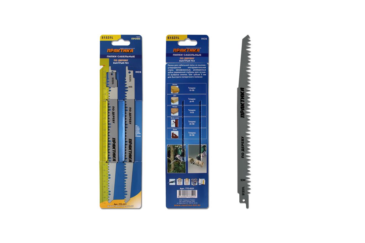 Полотно для сабельной пилы ПРАКТИКА 773-521 (S1531L) дерево, 240мм, шаг 5, HCS, 2шт.