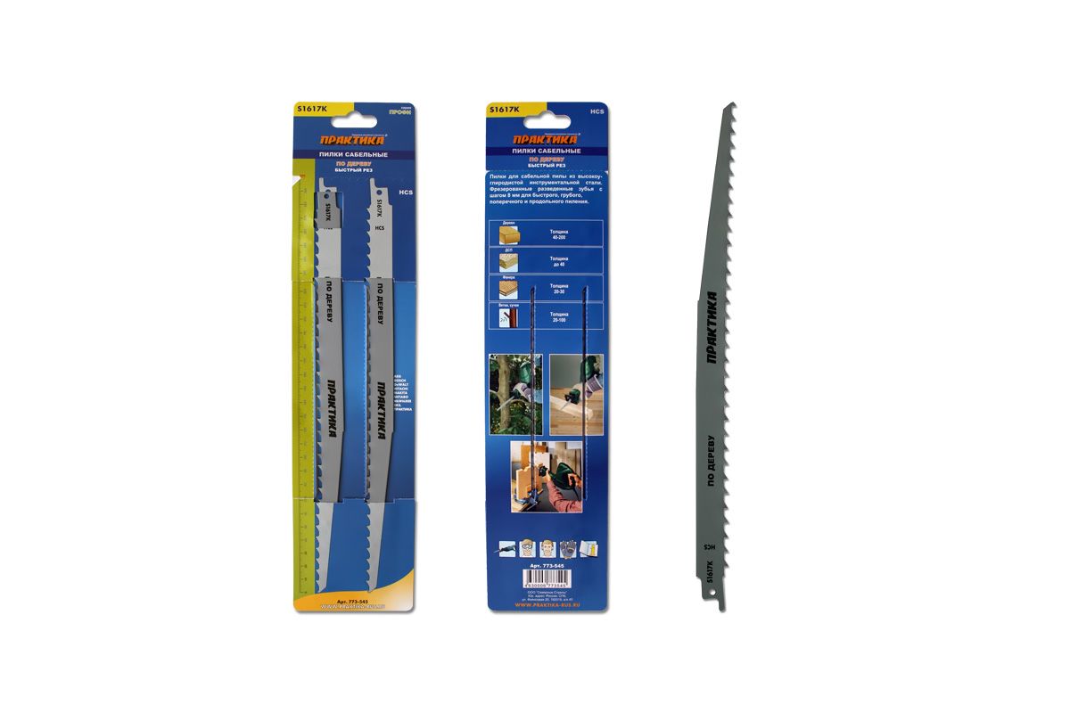 Полотно для сабельной пилы ПРАКТИКА 773-545 (S1617K) дерево, 300мм, шаг 8, HCS, 2шт.