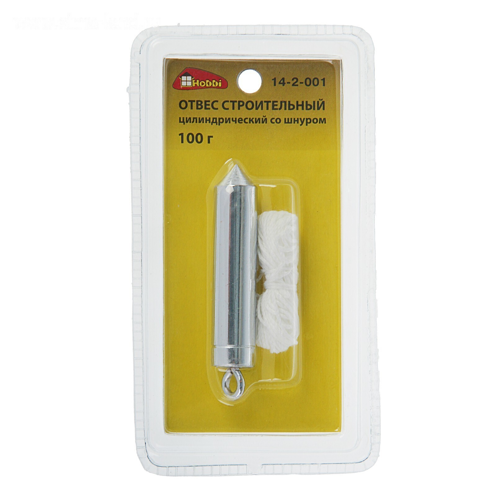Отвес цилиндрический Hobbi, 100 г, сталь, шнур 5 м