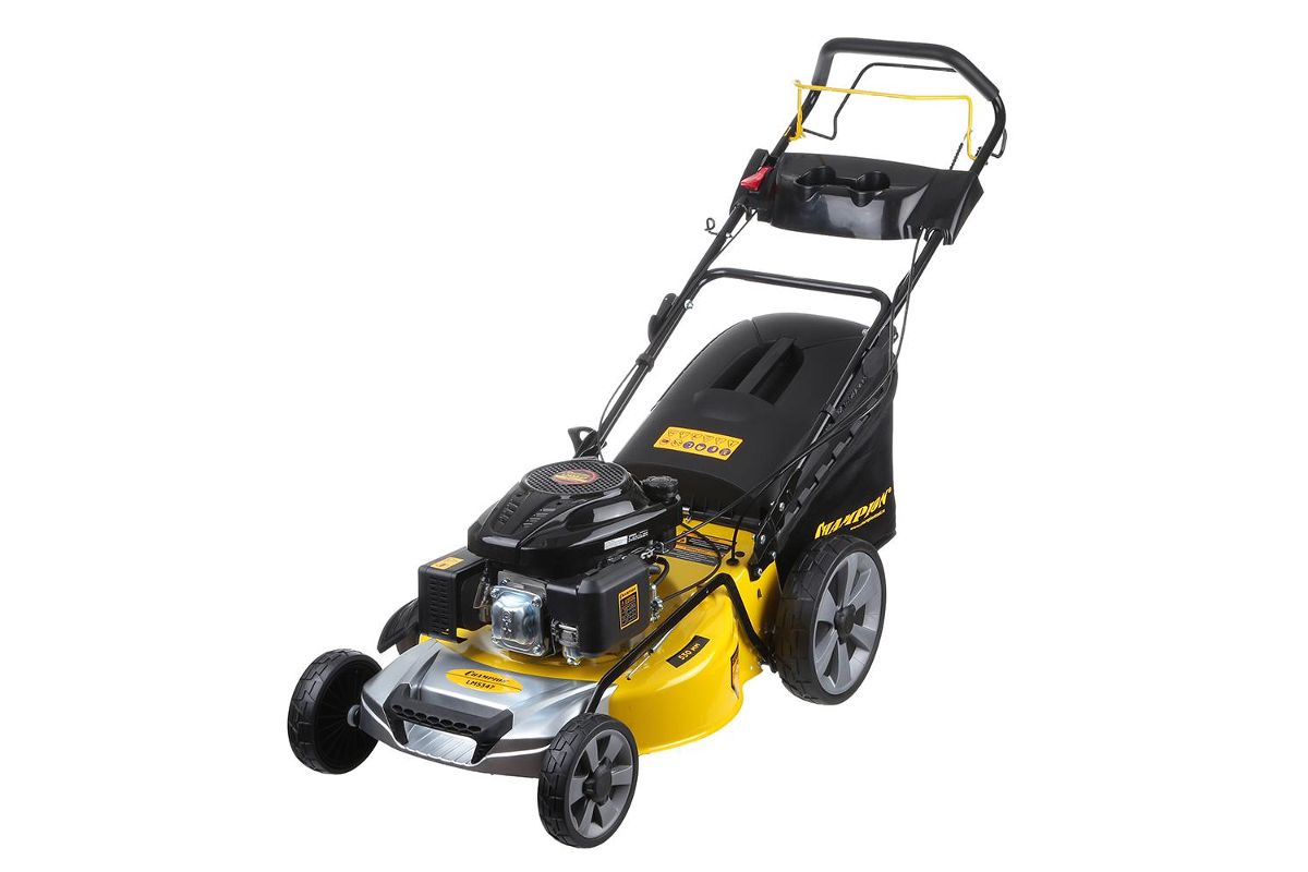 Диаметр задних колёс – 12 дюймов, передних – 8 дюймов. Газонокосилка манёвренная.