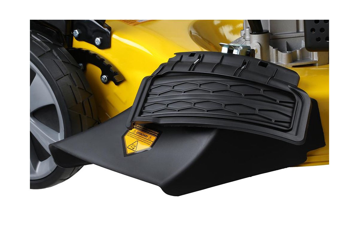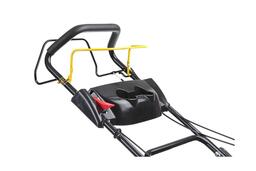Четыре режима работы: сбор травы в контейнер, сброс назад, вбок или мульчирование. Скошенную зелень можно выбросить или превратить в удобрение.