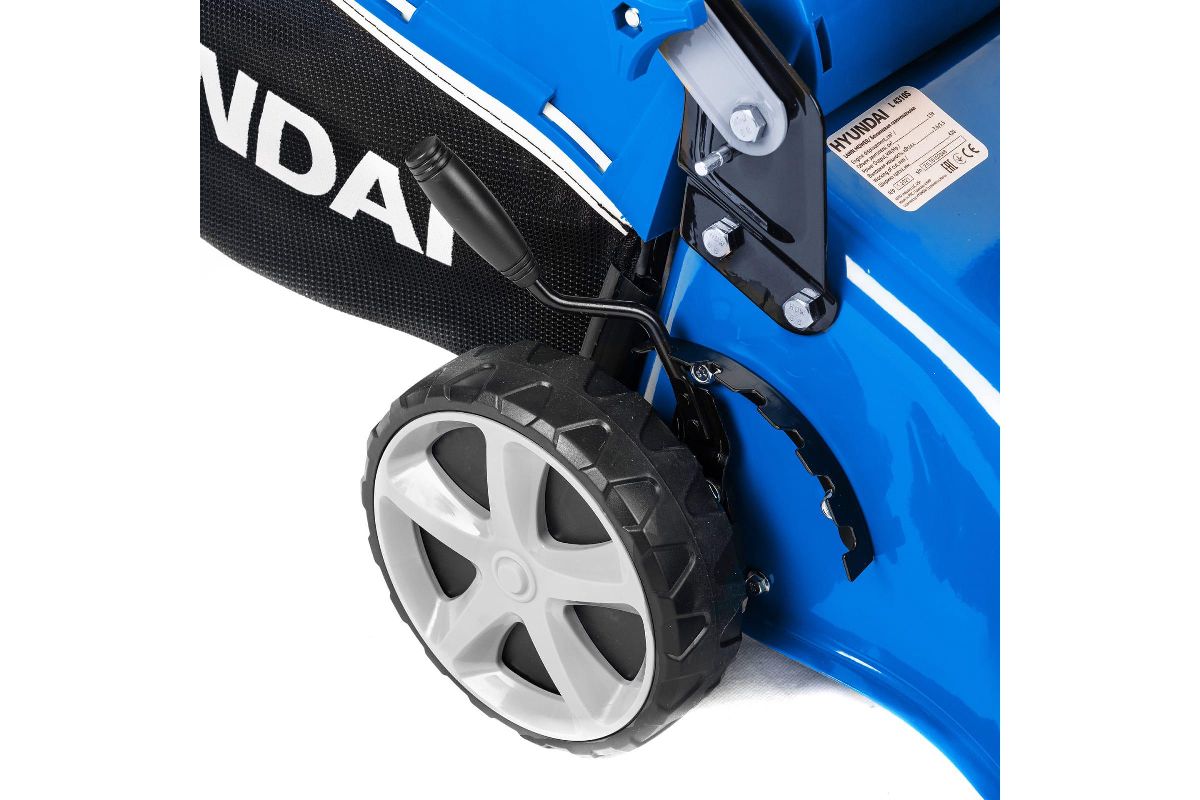 HYUNDAI L 4310S – бензиновая газонокосилка для дачных и приусадебных участков. Оборудована четырёхтактным двигателем мощностью 3,5 л.с. Собирает скошенную траву в контейнер объёмом 45 л. Ширина скашивания за один проход – 43 см.