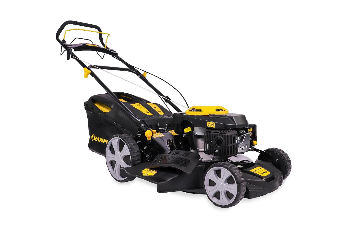 CHAMPION LM4627 – самоходная бензиновая газонокосилка для скашивания травы на участках площадью до 1500 м². Модель имеет прочный стальной корпус. Мощность модели – 2,6 кВт. Рабочий объем 4-тактного бензинового двигателя составляет 139 см³. Устройство оснащено травосборником объемом 60 л. Модель снабжена функцией мульчирования. Вес модели – 34,5 кг.