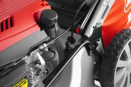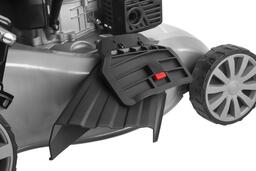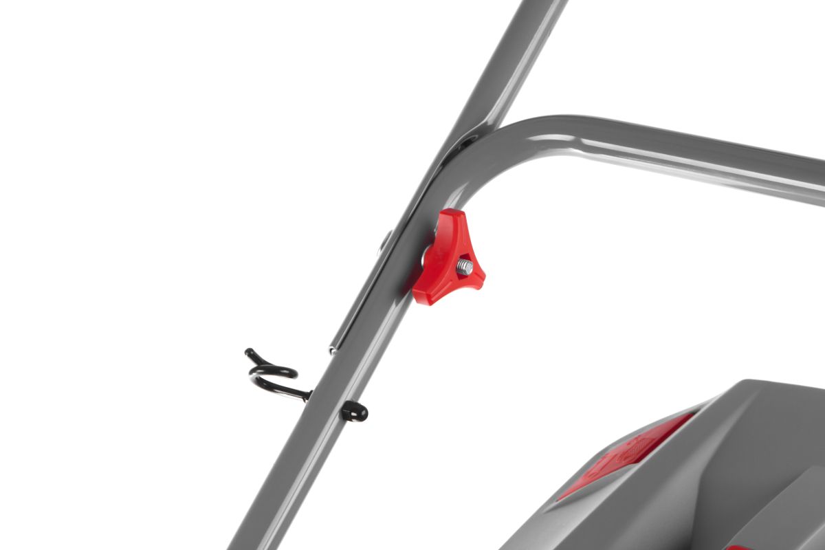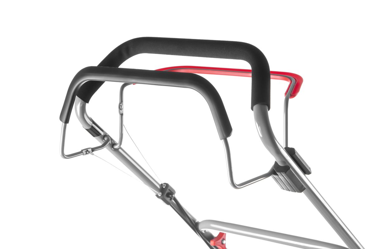 Складывающаяся рукоятка управления удобна при транспортировке и хранении, газонокосилку можно перевозить даже в багажнике легкового автомобиля.