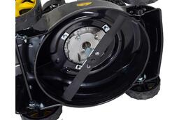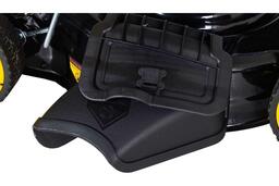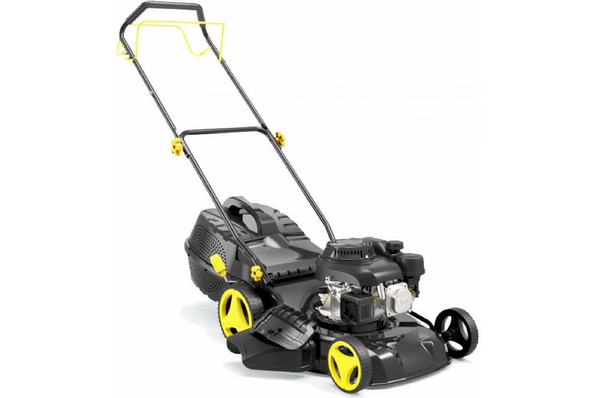 Четыре колеса обеспечивают хорошую проходимость и не мнут траву. Газонокосилку легко передвигать, даже когда она выключена.
