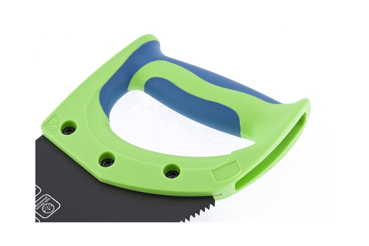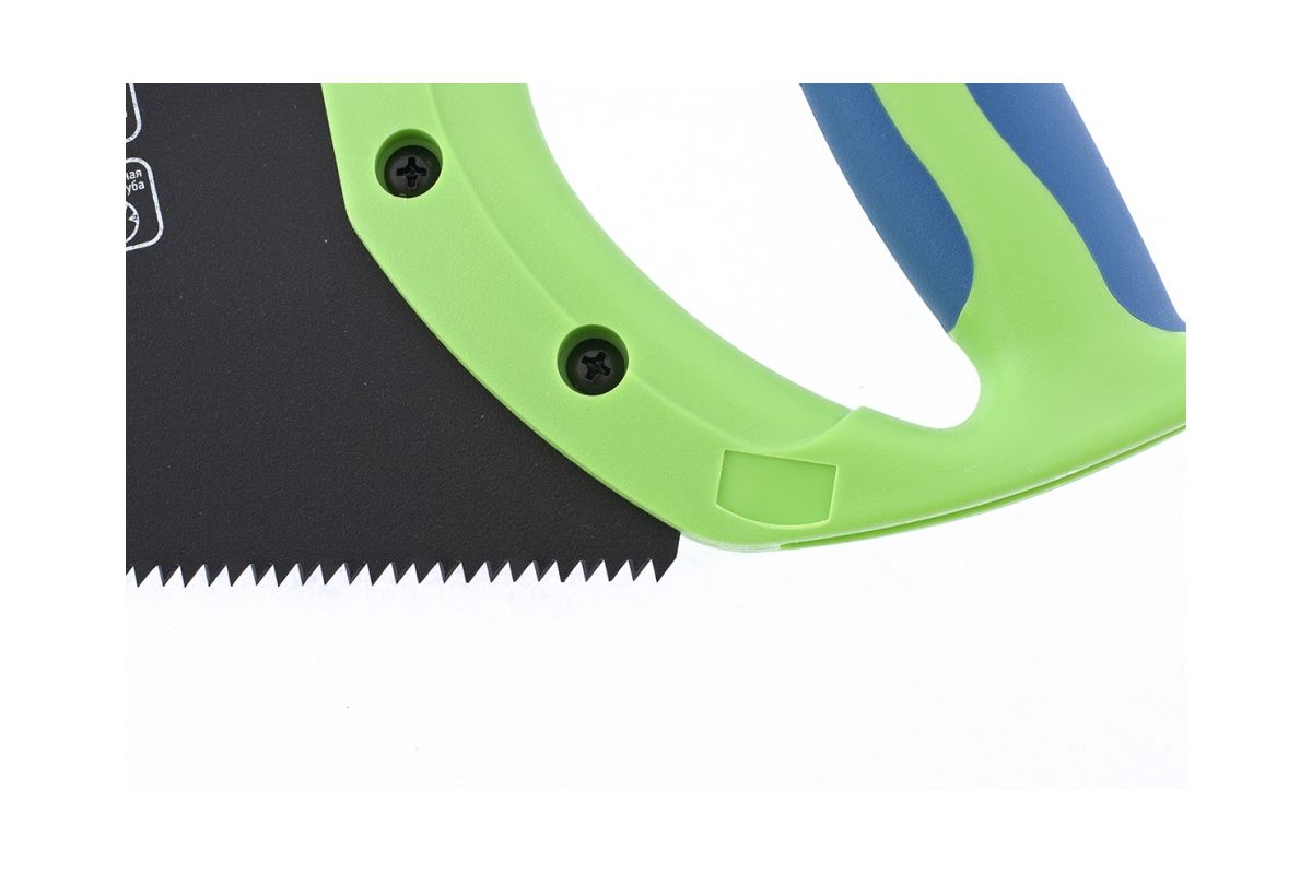 Ножовка по дереву Сибртех «Зубец» 23810 с полотном длиной 400 мм, калеными зубьями с 2D-заточкой и шагом 7-8 TPI, защитным покрытием и 2-компонентной рукояткой, используется для распиливания заготовок из древесины, фанеры и ДСП. Выполняет продольный и поперечный распил. Заточка зубьев 2D дает возможность пилить по направлению как вперед, так и назад. Зубья с универсальным шагом 7-8 TPI обеспечивают оптимальную скорость и качество реза. Если режущая кромка затупится, ее можно будет заточить. Ножовка будет полезна в столярной мастерской, а также дома или на даче.