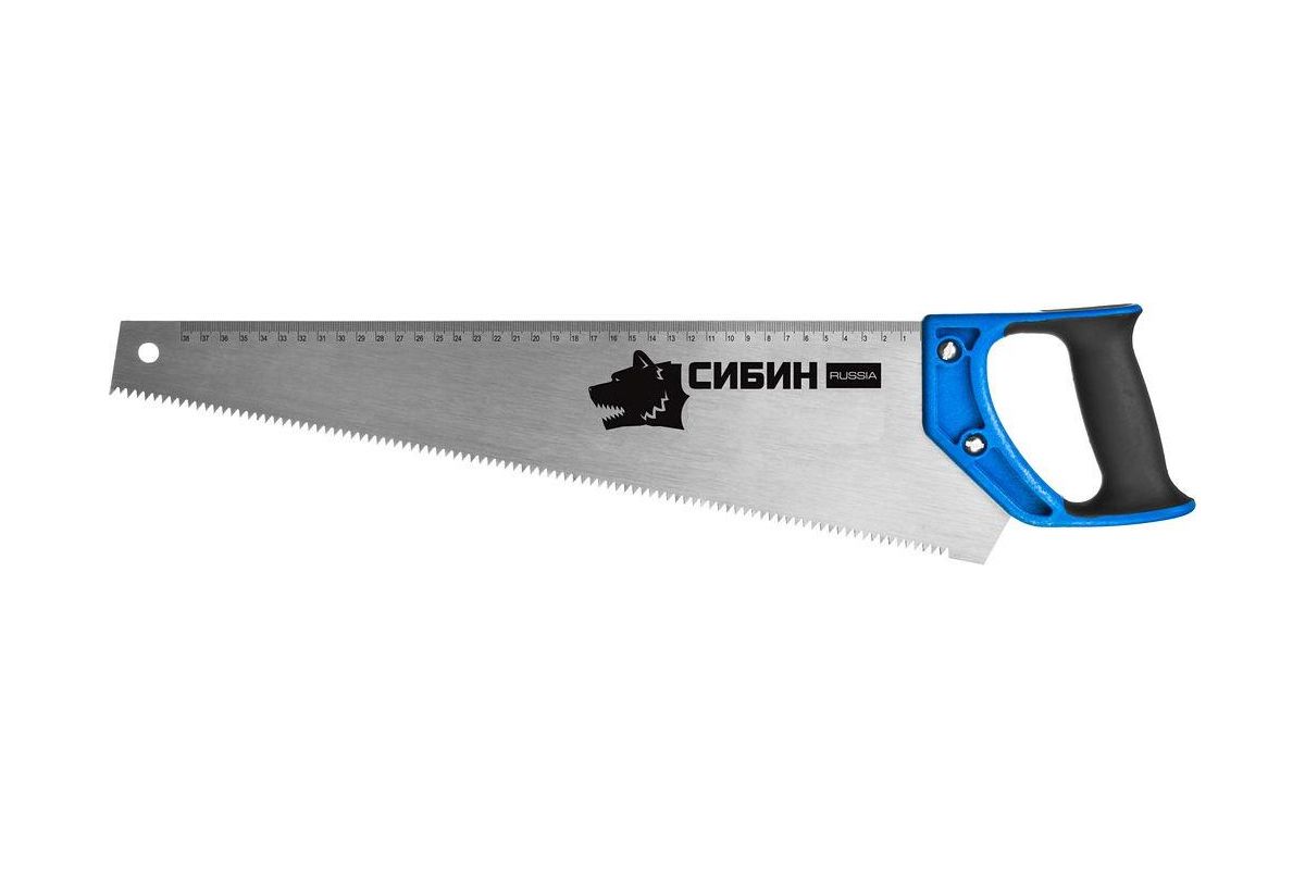 Ножовка по дереву СИБИН 15055-50 500 мм, шаг 4 TPI (6 мм) Алмазная заточка зубьев, высокочастотная закалка зубьев, полотно из высокоуглеродистой стали, двухкомпонентная рукоятка, линейка