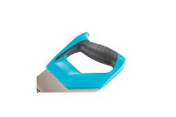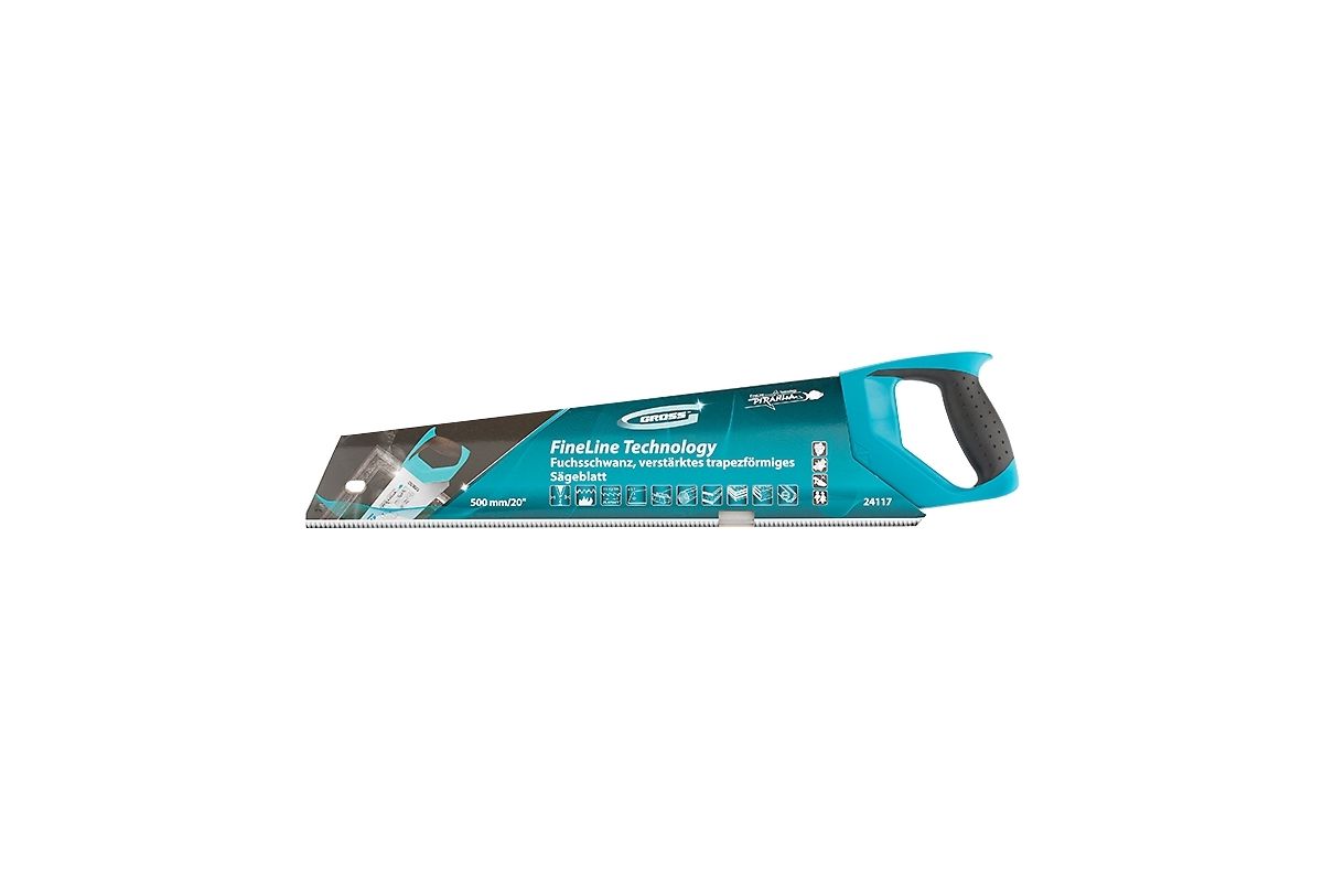 Ножовка ''PIRANHA'' торговой марки GROSS предназначена для столярных работ как с древесными композитными материалами (ламинатом, ДСП, ДВП, МДФ), так и с синтетическими (пенополистиролом, полиуретаном и пр). Полотно ножовки длиной 550 мм изготовлено из японской стали SK-5. Поверхность полотна обработана антикоррозийным полимерным покрытием. Зубья ножовки имеют трехгранную заточку, что позволяет работать максимально качественно и с высокой скоростью. Двухкомпонентная рукоятка ножовки изготовлена из ударопрочного пластика, а эргономичная форма делает ее комфортной для рук даже при интенсивном пилении.