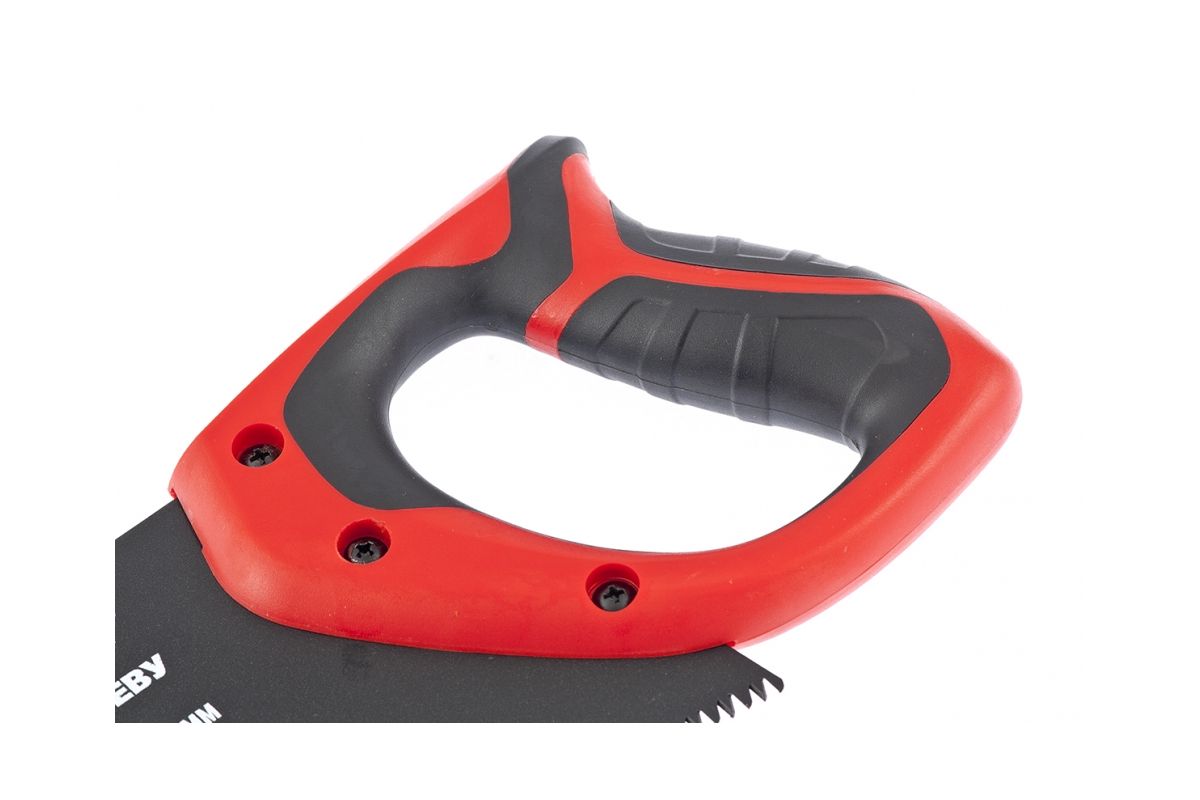 Ножовка изготовлена из холоднокатаной стали марки 65 Mn с твердостью закаленного зуба 50-65 HRc. Трехгранная лазерная заточка зубьев. Количество зубьев на дюйм 7. Тефлоновое покрытие уменьшает трение полотна о заготовку и защищает его от коррозии. Эргономичная двухкомпонентная рукоятка крепится к полотну тремя винтами.
