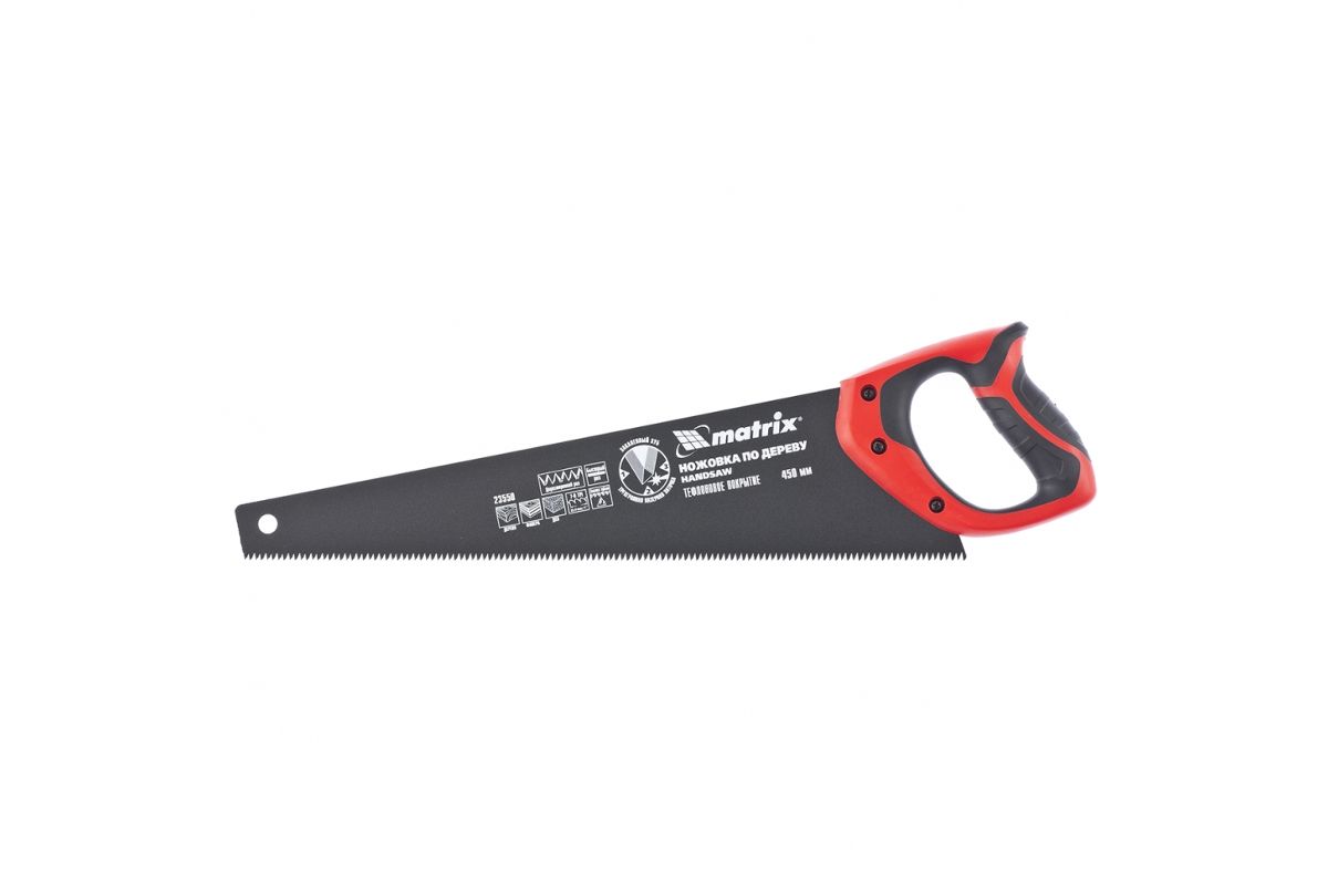 Ножовка MATRIX 23550 по дереву 450мм 7-8 tpi зуб-3d каленый зуб тефл.покр.полотна 2-х комп..рук-ка