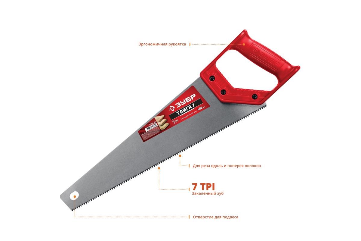 Ножовка ЗУБР ТАЙГА-7 универсальная (пила), 400мм,7TPI, закаленный зуб