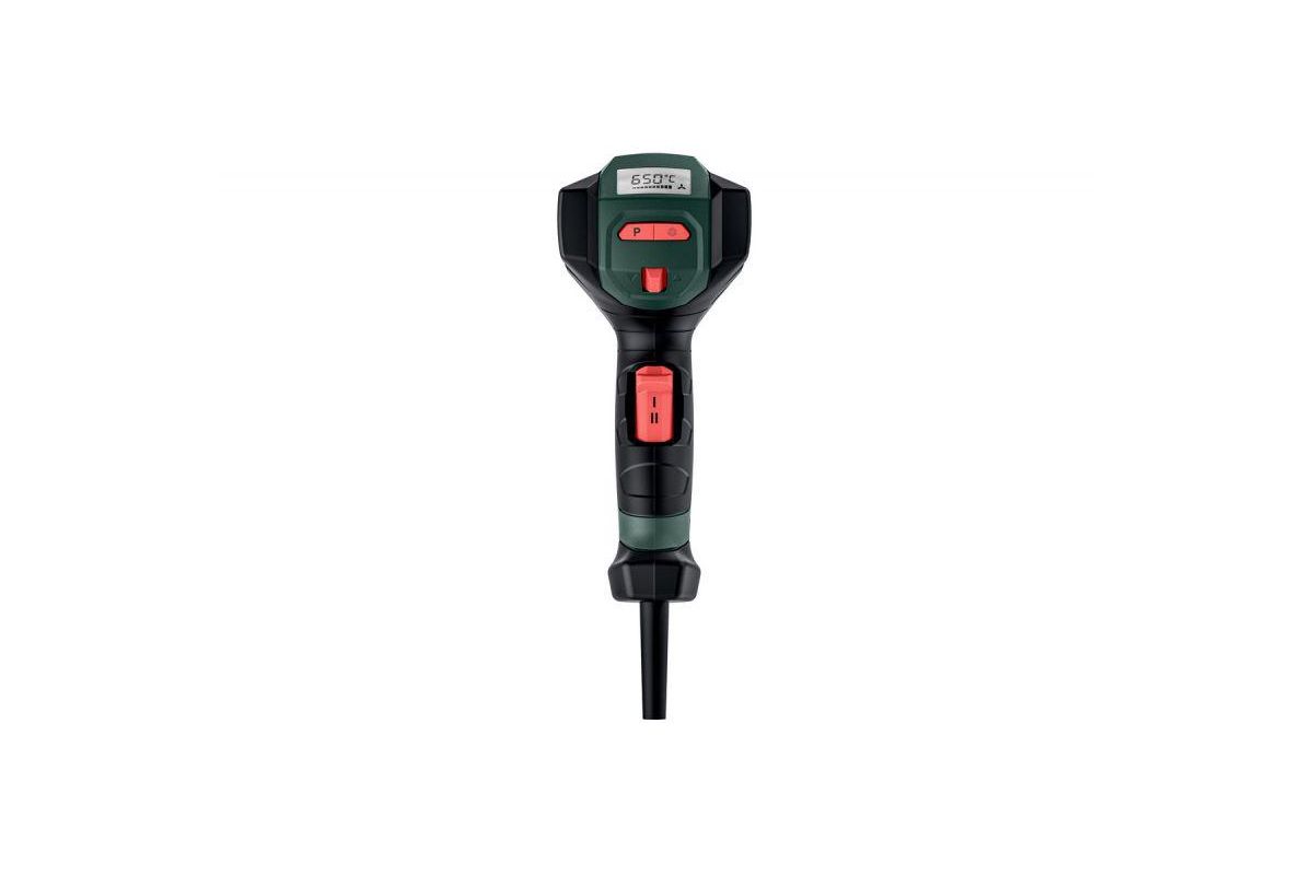 Прецизионный термофен METABO HGE 23-650 LCD с ЖК-дисплеем для точной настройки температуры и объема воздуха для различных материалов и областей применения.