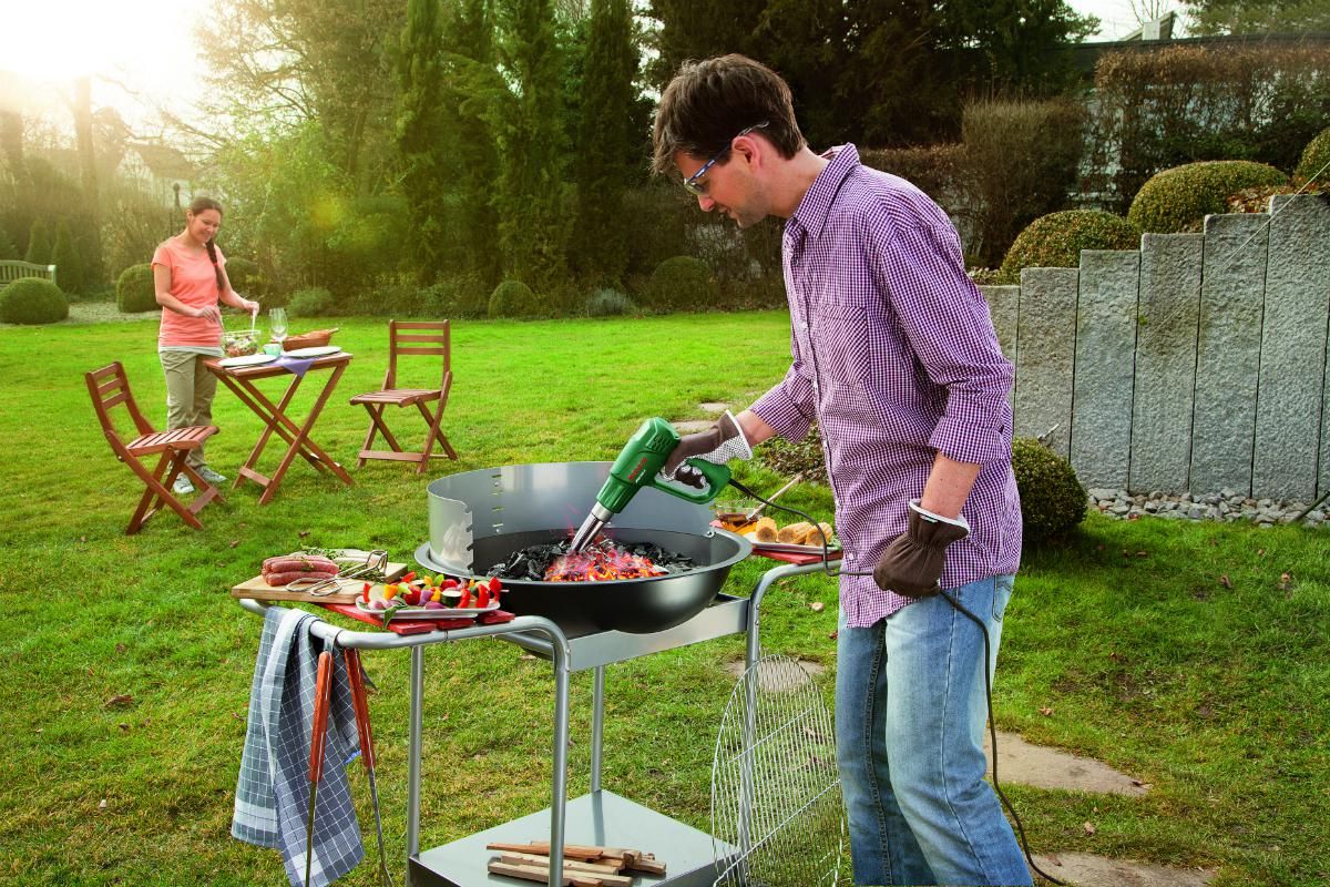 Инструмент при правильном обращении совершенно безопасен в работе. Для этого он оснащен закрытой рукояткой, предохраняющей руку от воздействия горячего воздуха и раскаленных частиц. А специальная функция Thermostopp автоматически отключит нагревательный элемент, если фен перегреется.