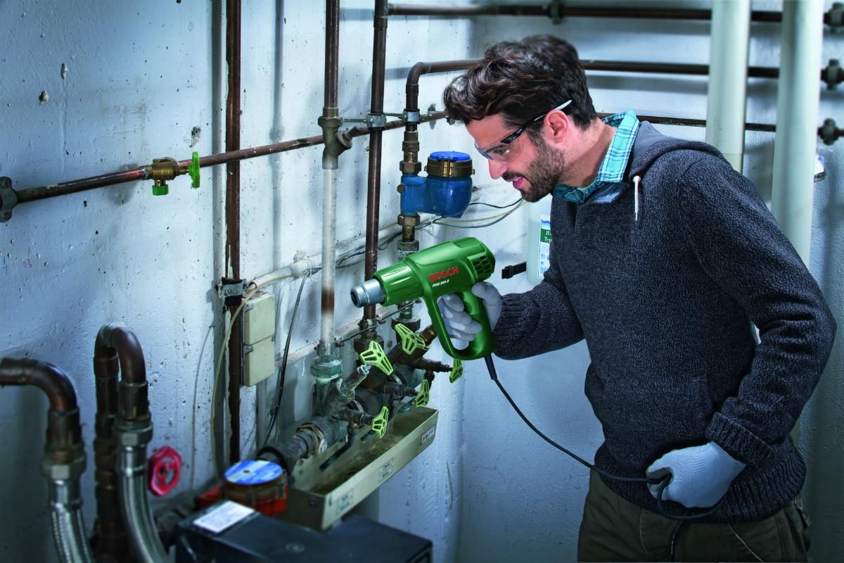 Промышленный фен BOSCH PHG 500-2 отличается высокой производительностью и надежностью. Не стоит путать его, конечно же, с бытовым прибором для сушки волос. Хотя принцип работы у них один и тот же, промышленный фен отличается более высокой мощностью и температурой нагрева. Температура на выходе термофена может достигать 600-700 градусов, что позволяет ему выполнять разнообразные задачи: удалять старые слои лаков и краски; сваривать ПВХ мембраны, линолеум, полипропиленовые ткани; плавить воск, смолы или припой; очищать ото льда трубы, элементы механизмов и замки; дезинфицировать клетки животных или птиц; просушивать стены и прочее.