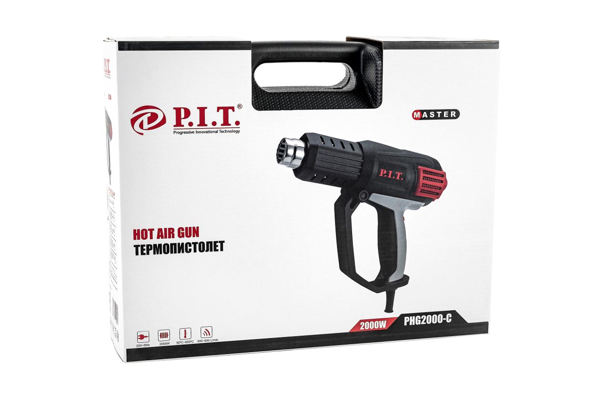 Электрофен P.I.T. PHG 2000-C МАСТЕР 2кВт,50-600С,3 полож.потока воздуха,насадки,кейс