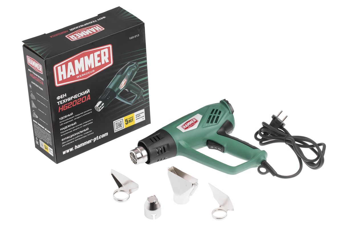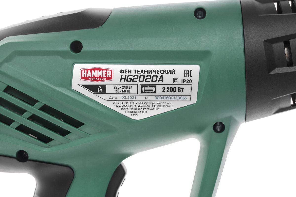 HAMMER HG2020A – технический фен для обогрева водопроводов, удаления краски, разделения клеевых швов или сварки пластмасс. Мощность 2200 Вт. Пригодится для использования дома, в мастерской или на строительной площадке.