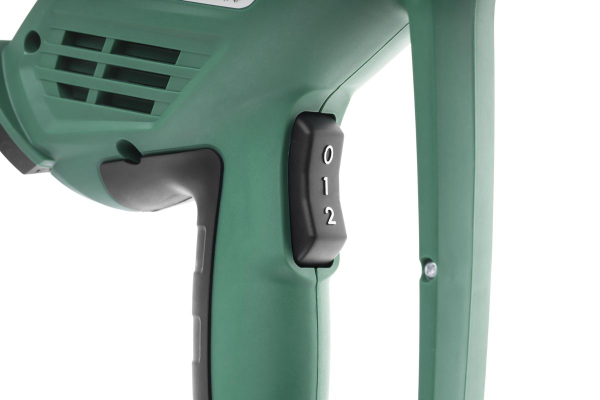 Величина температуры регулируется в двух режимах: 50-350°C и 100-600°C. Фен удобно настраивать на работу с разными материалами.
