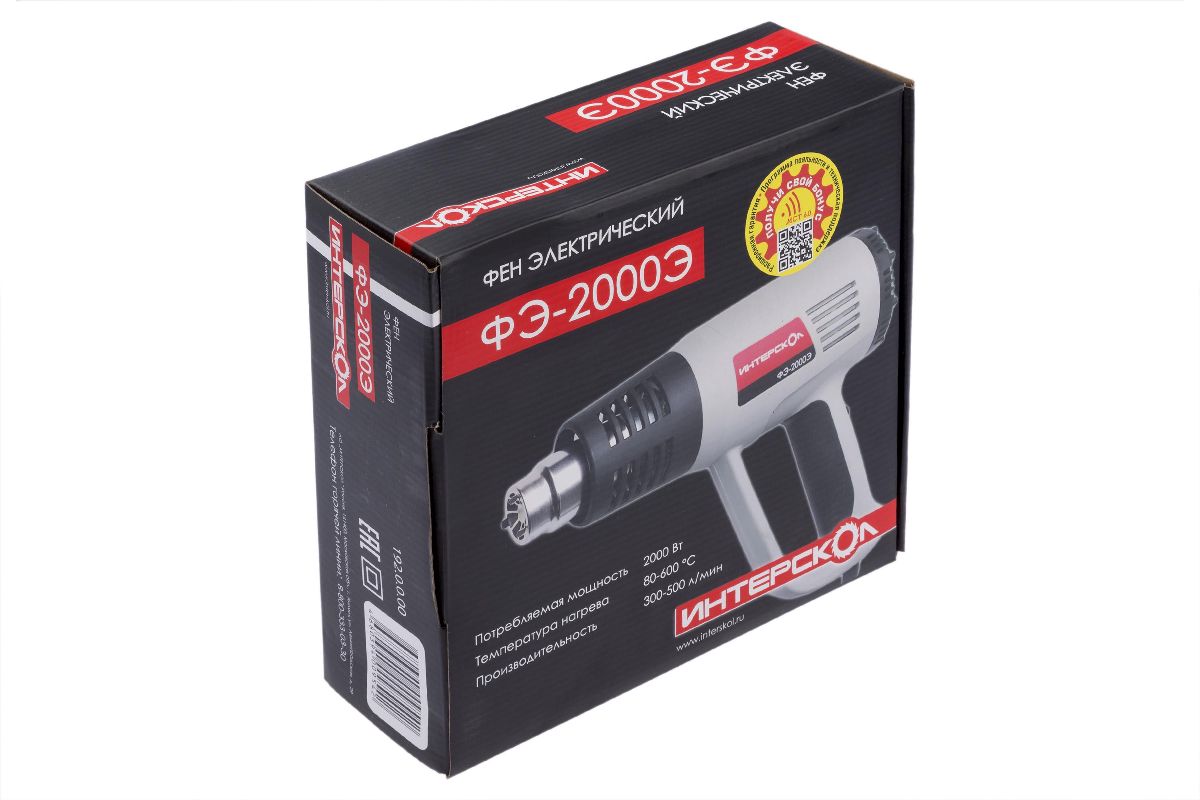 Интерскол ФЭ-2000Э – строительный фен с двумя режимами воздушного потока. Предназначен для сушки поверхностей, удаления краски, нагревания термоусадочных труб, формования и сварки пластмасс. Также поможет разморозить водопровод или размягчить клеевые соединения.