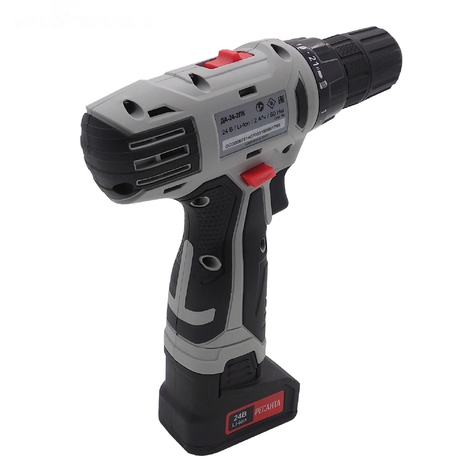 Дрель-шуруповерт "Ресанта" ДА-24-2ЛК 75/14/7, аккумуляторная, 24 В, 21+1, 2 АКБ, кейс