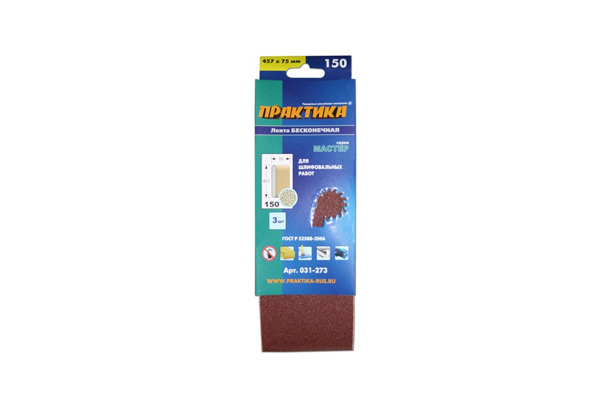 Лента шлифовальная ПРАКТИКА 031-273 75х457мм, P150, 3шт.
