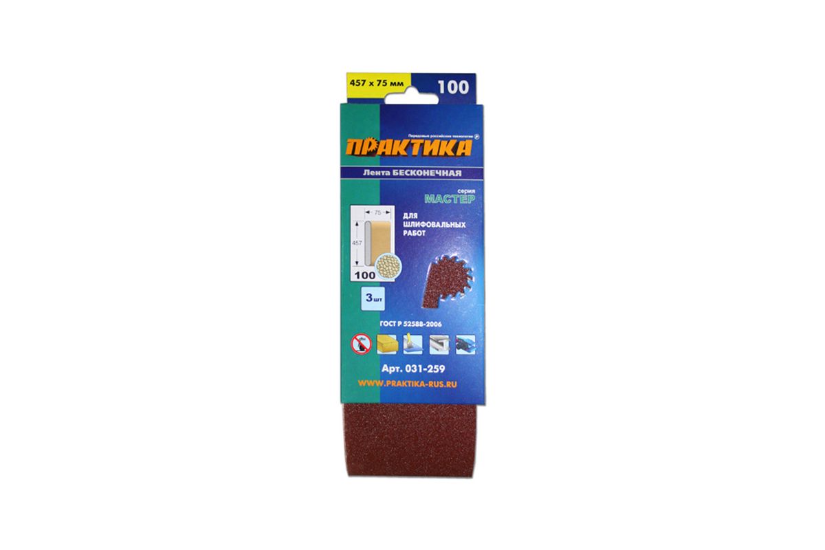 Лента шлифовальная ПРАКТИКА 031-259 75х457мм, P100, 3шт.
