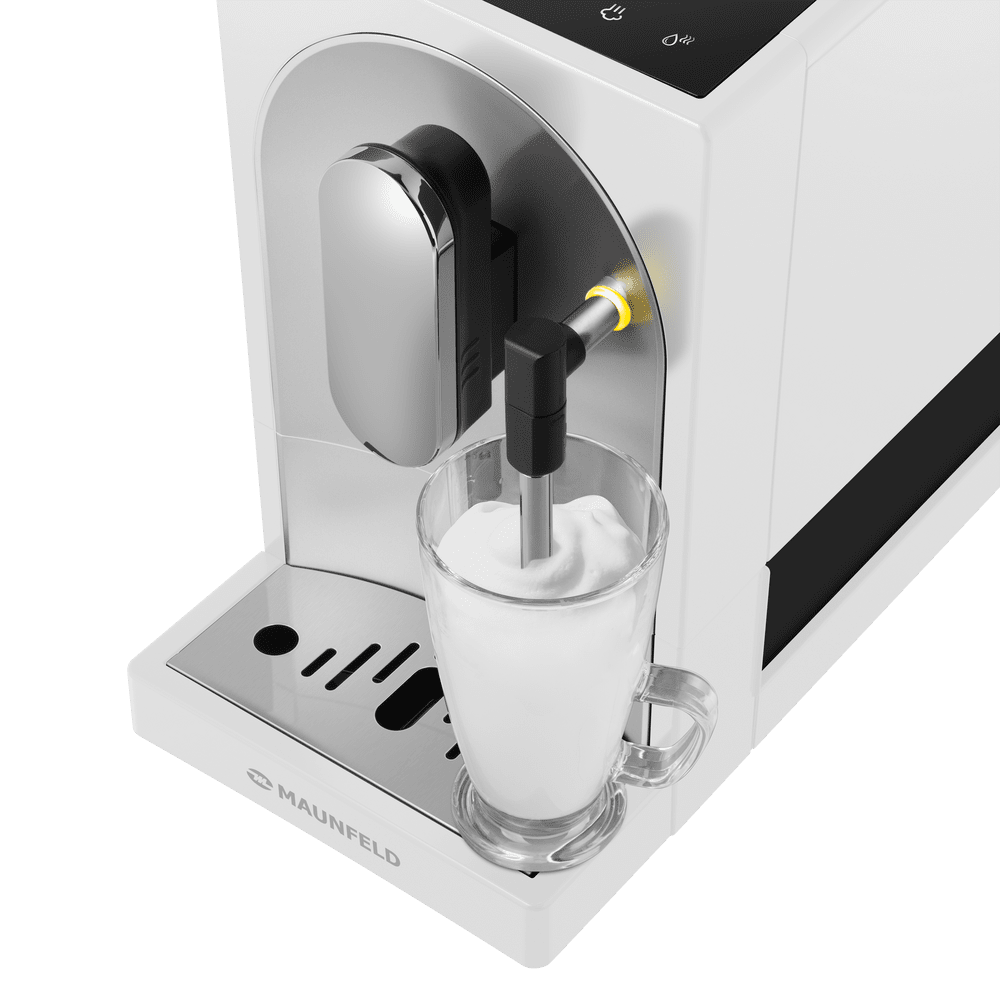 Персональный бариста - всегда под рукой. По-настоящему компактная кофемашина с широким набором возможностей. Приготовление напитков одним касанием с настройкой рецептов по своему вкусу. Регулировка крепости кофе и тонкости помола. Сенсорная панель с удобной и наглядной индикацией. Все нужные настройки - легким нажатием. Наслаждайтесь не только результатом, но и процессом. В кофемашину встроена кофемолка объемом 160 г. Измельчите зерно непосредственно перед приготовлением напитка – вкус и аромат кофе будет более ярким, богатым и насыщенным. При помощи регулятора вы можете самостоятельно установить необходимую степень помола зерна. Для лучшего раскрытия вкуса кофе светлой обжарки выбирайте мелкий помол, крупный помол больше подойдет для зерен темной обжарки. Благодаря мощной помпе при заваривании напитка в кофемашине поддерживается постоянное высокое давление 19 бар. Оно позволяет получить вкусный сбалансированный кофе, по качеству не уступающий напитку из профессиональной кофемашины. Вы можете выбрать объем порции и сохранить настройки в память кофемашины вместо заводских, чтобы прибор автоматически заваривал для вас идеальную чашку кофе! Дозатор кофе можно регулировать по высоте, благодаря чему MF-A7021 всегда аккуратно нальет напиток как в маленькую чашку для эспрессо, так и в большую чашку для американо. Кофемашина автоматически включает подсветку рабочей зоны, поэтому контролировать приготовление напитка удобно даже в темном помещении. Кофемашина оснащена капучинатором, который позволит быстро взбить молоко в густую однородную пену. Используйте его, чтобы приготовить капучино, латте, раф и другие популярные напитки с добавлением молока. Удобные программы очистки кофемашины позволяют добиться идеальной чистоты. Это позволяет предотвратить появление известкового налёта и загрязнений, что увеличивает срок службы кофемашины и позволяет поддерживать её в отличном состоянии. Очистка контейнера для кофейного жмыха не требует особых усилий – извлечь его из кофемашины можно одним нажатием. Специальный лоток для сбора капель при необходимости можно легко снять и промыть под проточной водой. В комплекте: салфетка, щетка и игла для чистки,пакеты с лимонной кислотой (3 шт).