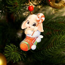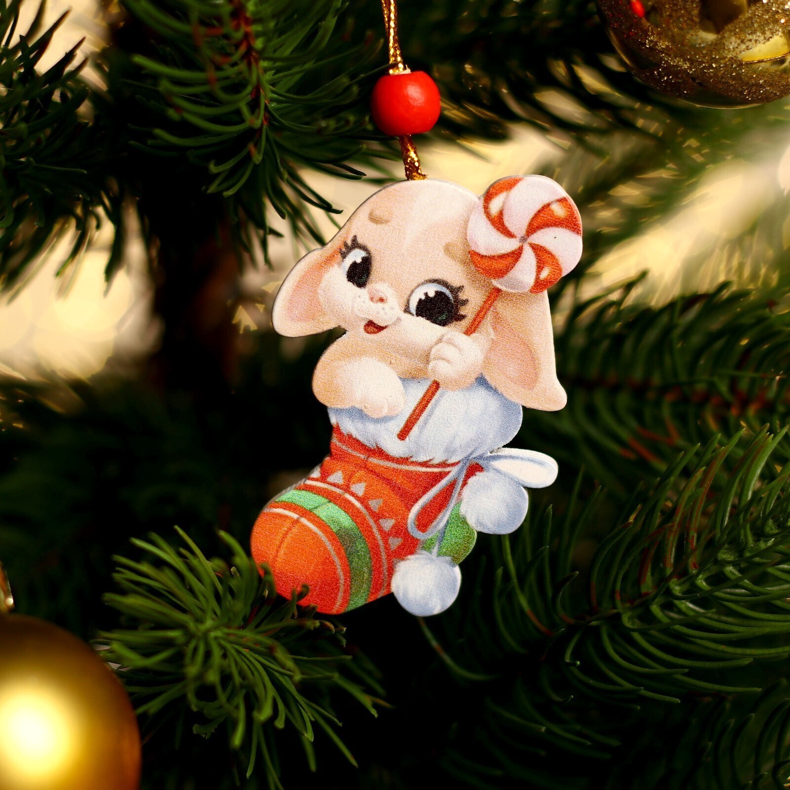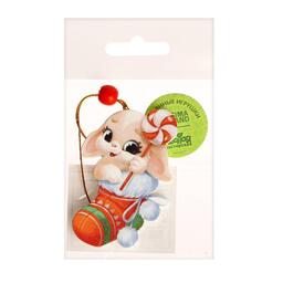 Подвеска новогодняя деревянная «Зайчик в носочке»