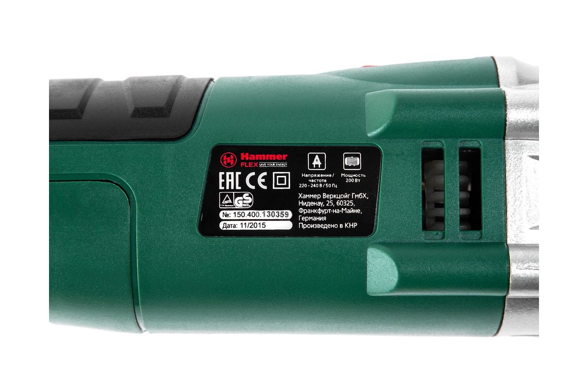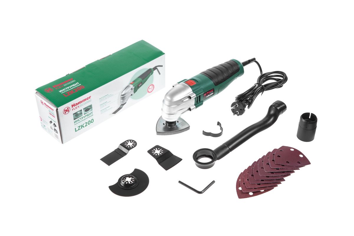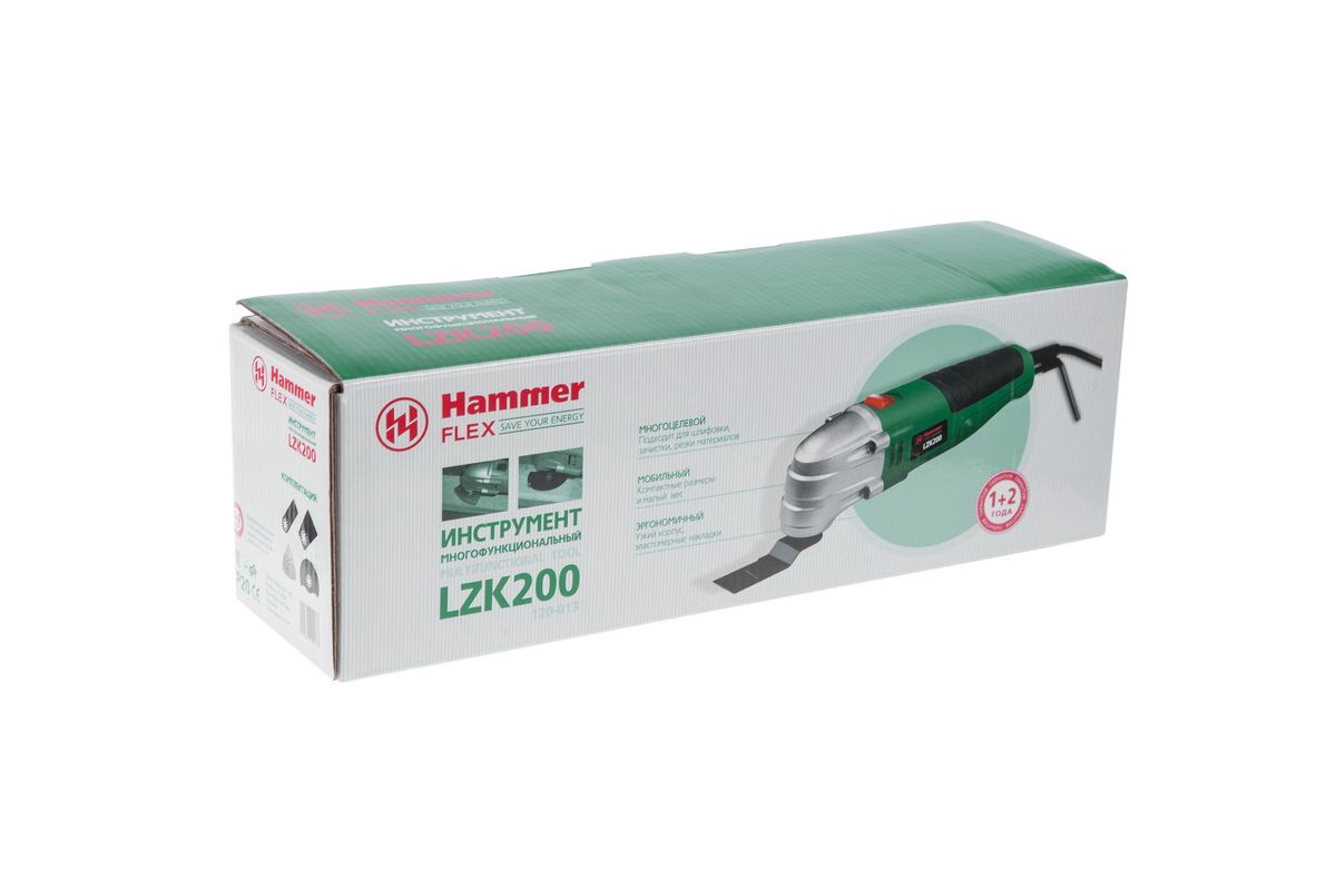 HAMMER LZK200 – реноватор для шлифовки, нарезки и полировки металла, дерева и пластика. Питается от розетки 220 В. Мощность двигателя – 200 Вт. Достаточно для проведения финишной шлифовки, полировки, распила гипса, меди, алюминия и дерева.