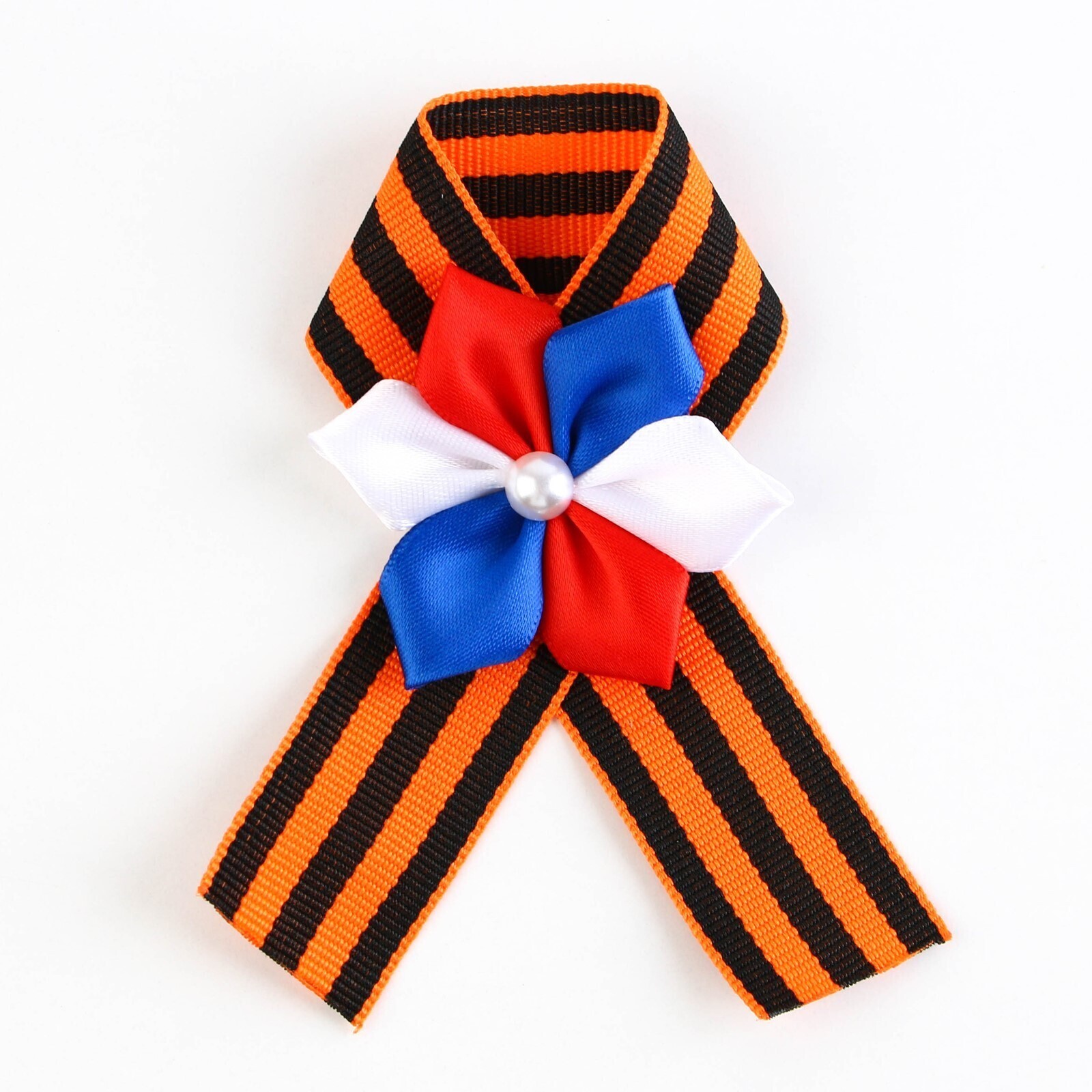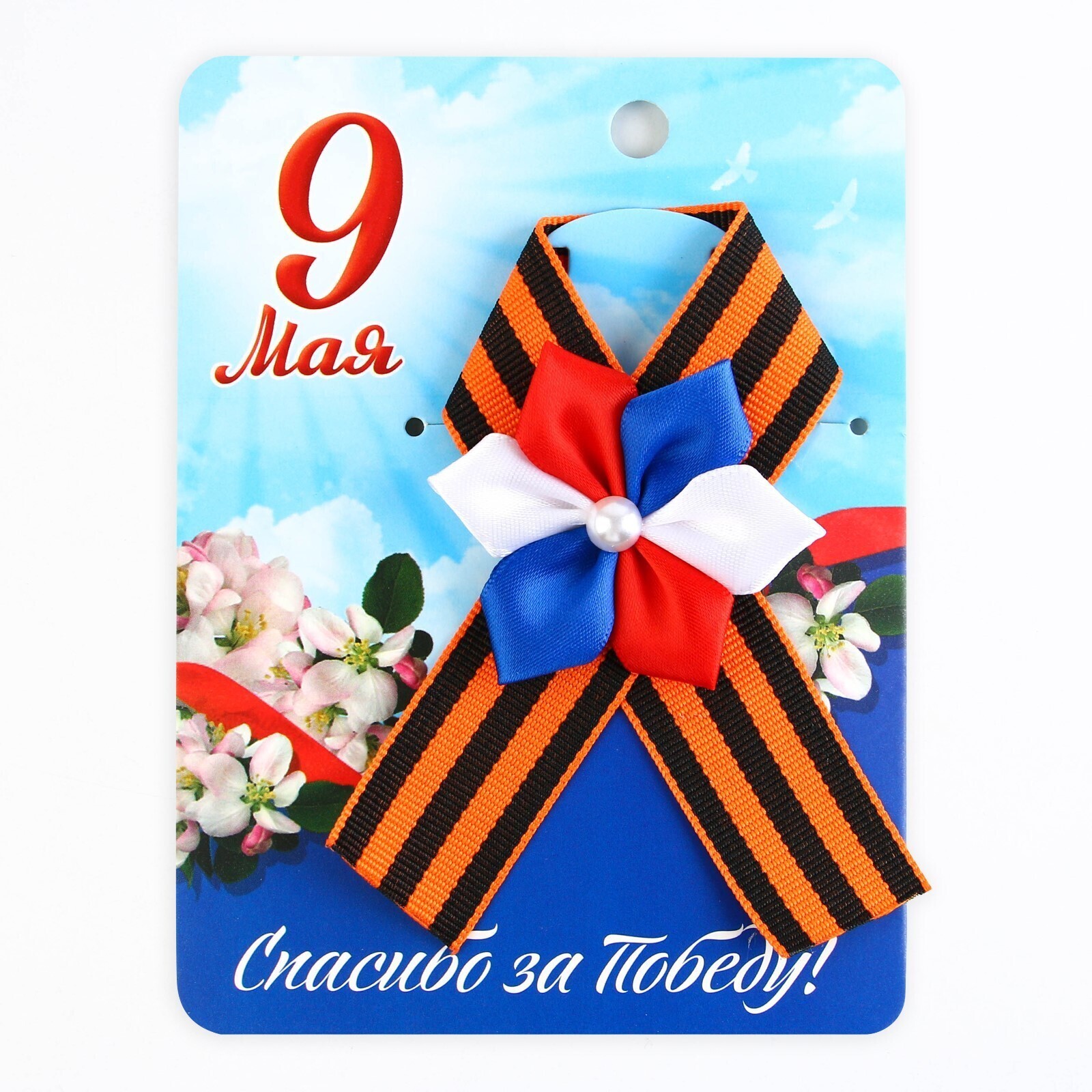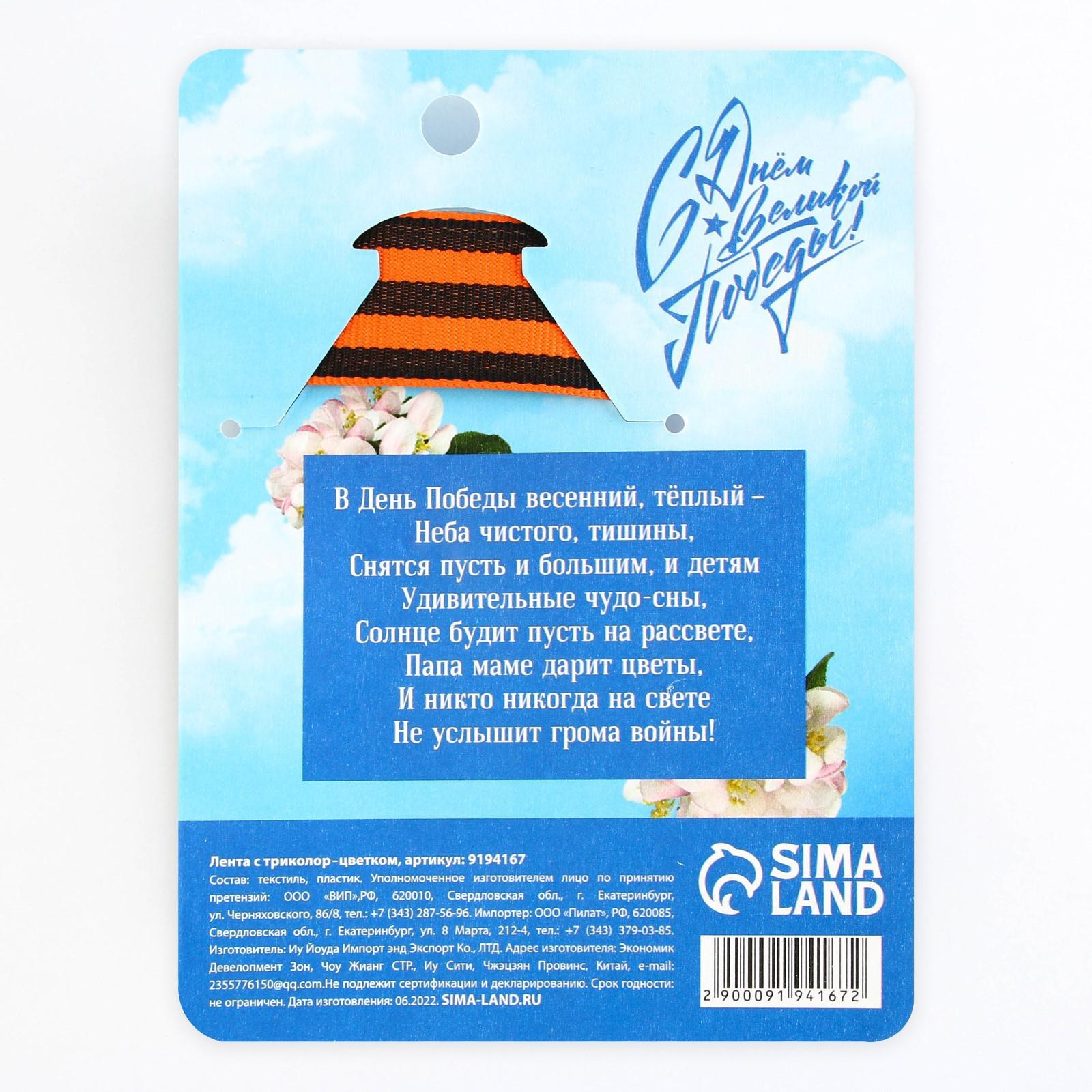 Лента с триколор цветком "Спасибо за Победу", 10,5 х 14 см