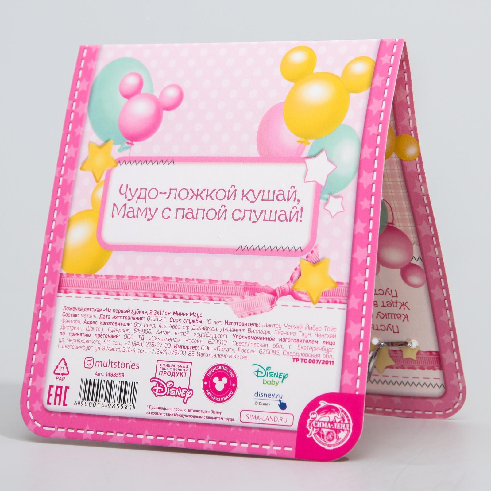 Наша уникальная разработка обязательно понравится малышу и его родителям! Эта детская ложечка с нанесением создана из нержавеющей стали и соответствует российским стандартам качества. К изделию прилагается открытка с Минни Маус. В специальное поле вы можете вписать имя адресата и свои пожелания. Такой подарок никого не оставит равнодушным!