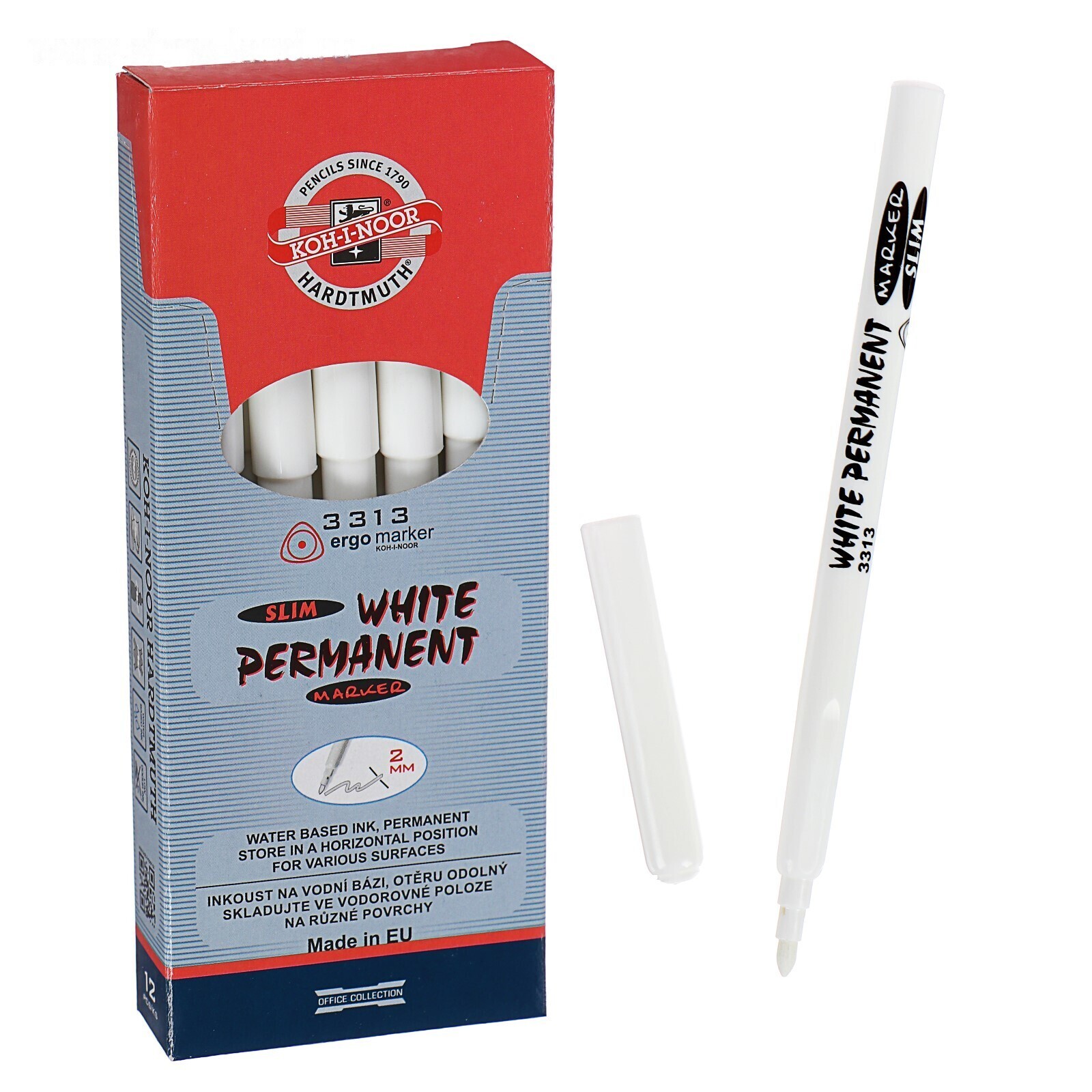 Маркер перманентный 2.0 мм Koh-I-Noor 3313, длина письма 350 м, картонная упаковка, белый