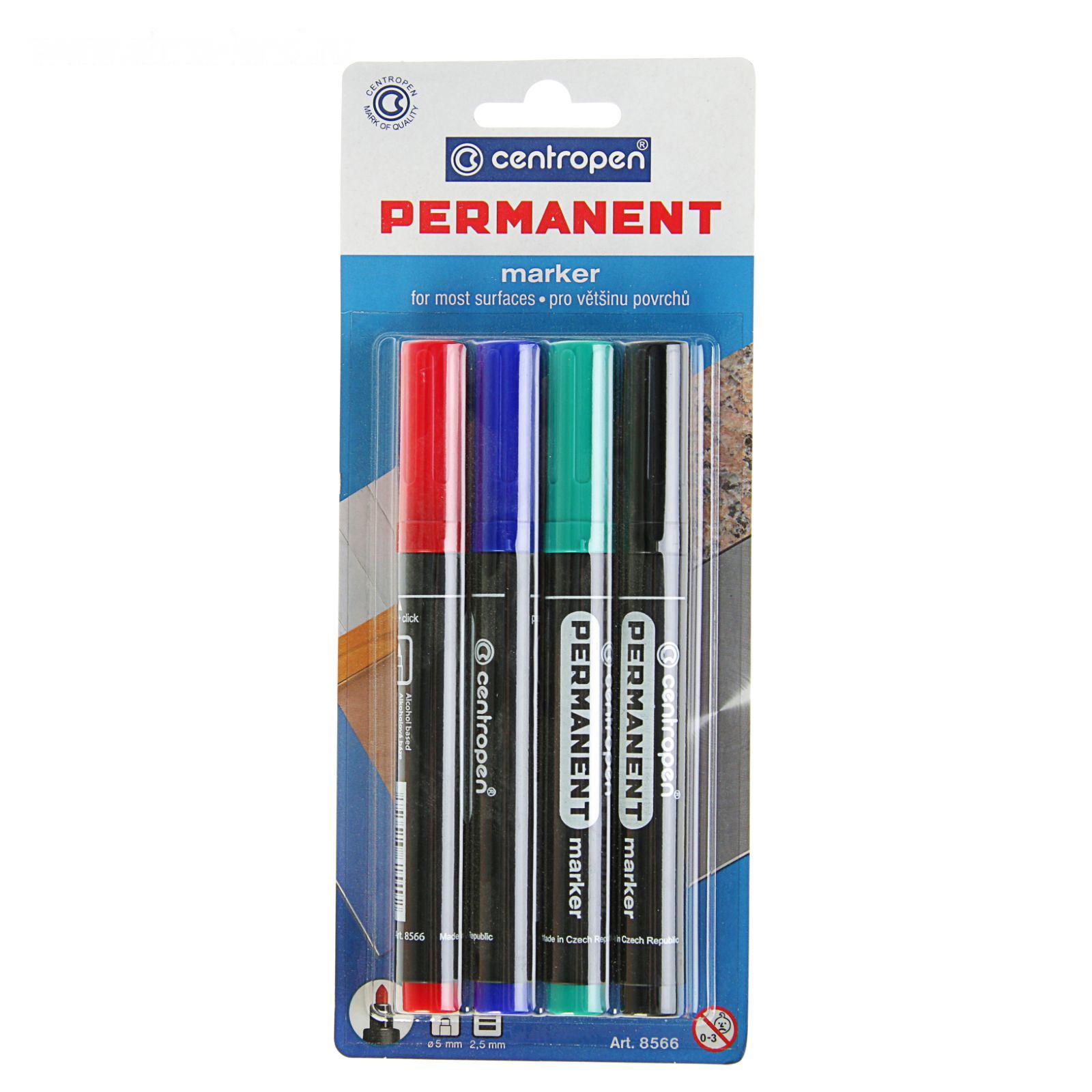 Набор маркеров перманентных 4 цвета, 5.0 мм Centropen 8566, линия 2,5 мм, блистер, европодвес