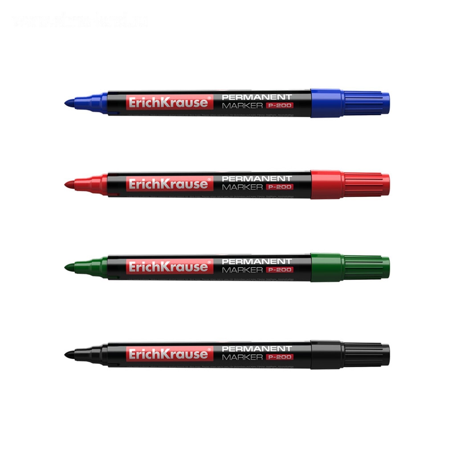 Набор маркеров перманентных 4 цвета, 0.8-2.2 мм, ErichKrause P-200, чернила на спиртовой основе, микс