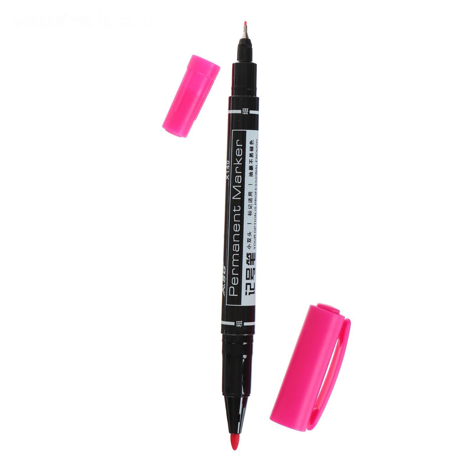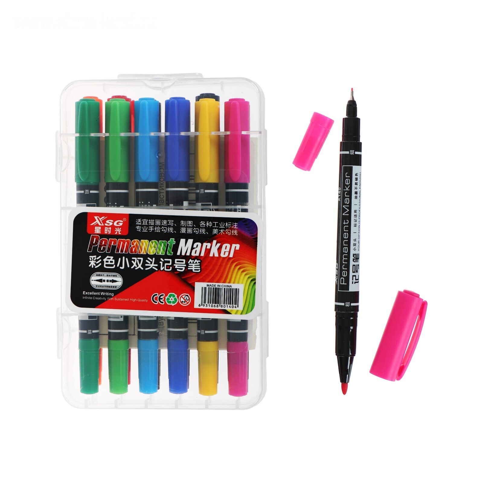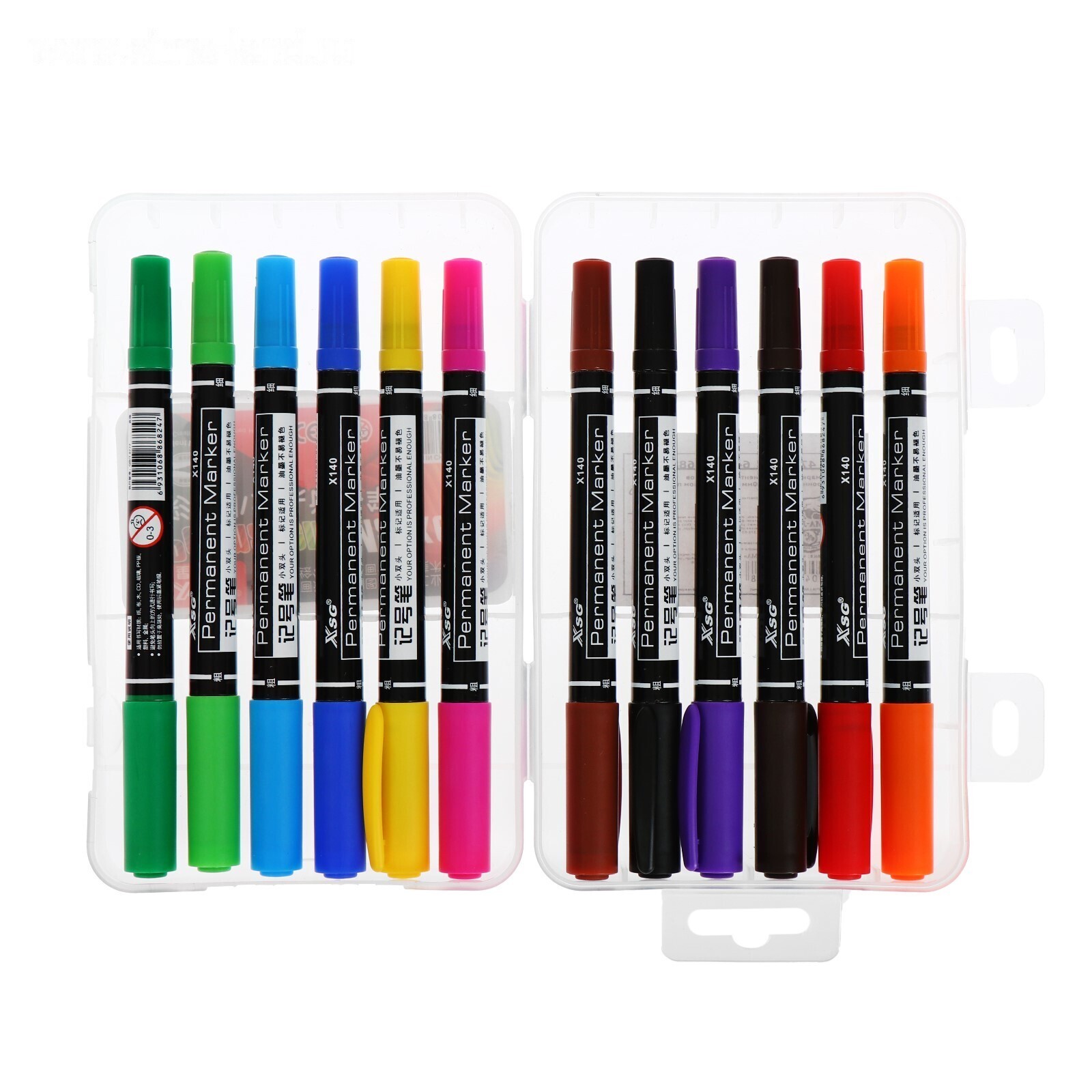 Набор маркеров перманентных 12 цветов двусторонних 0,5 мм / 1,0 мм в пластиковом пенале