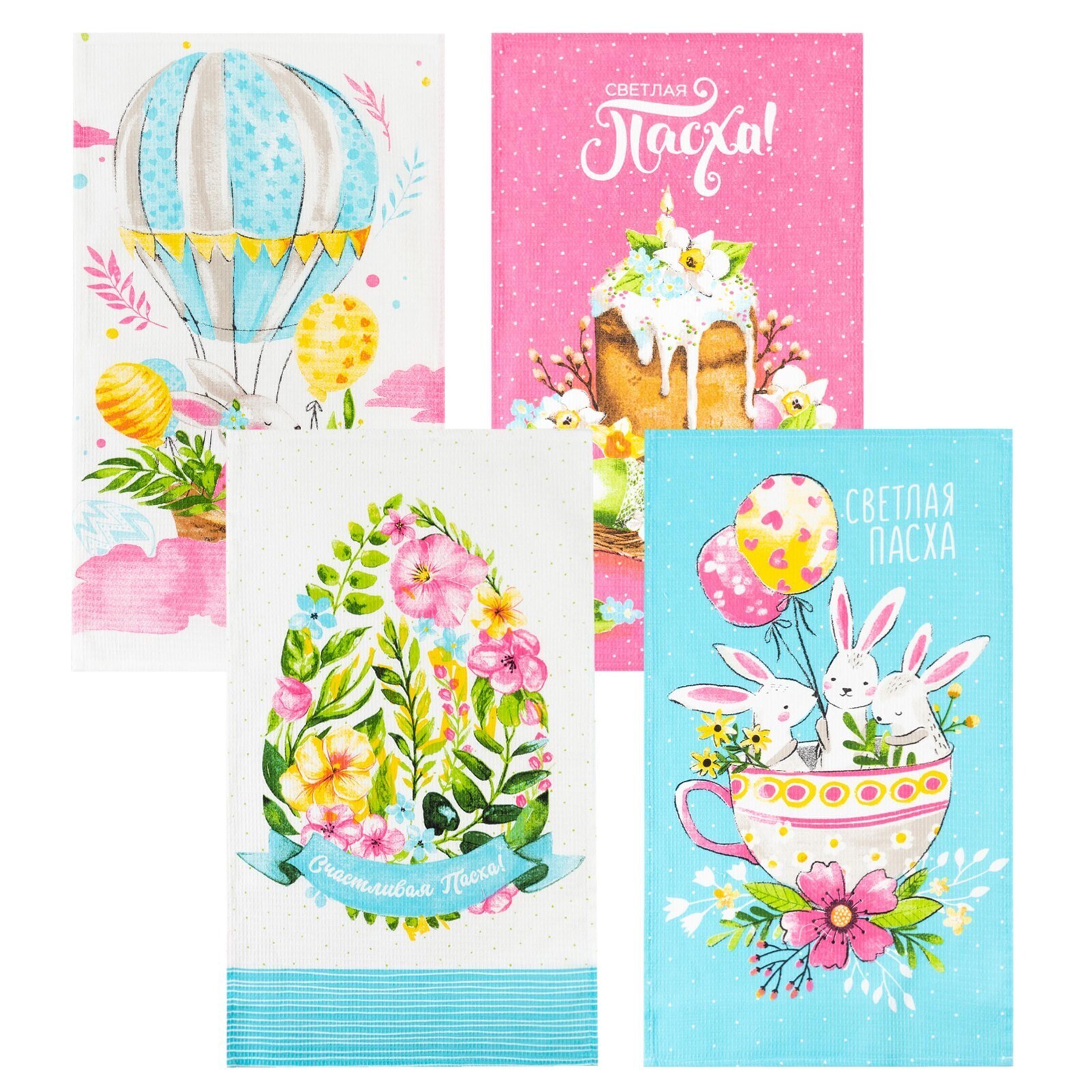 Набор полотенец кухонный Доляна «Пасхальные забавы» 35х60см-4шт, 100% хлопок