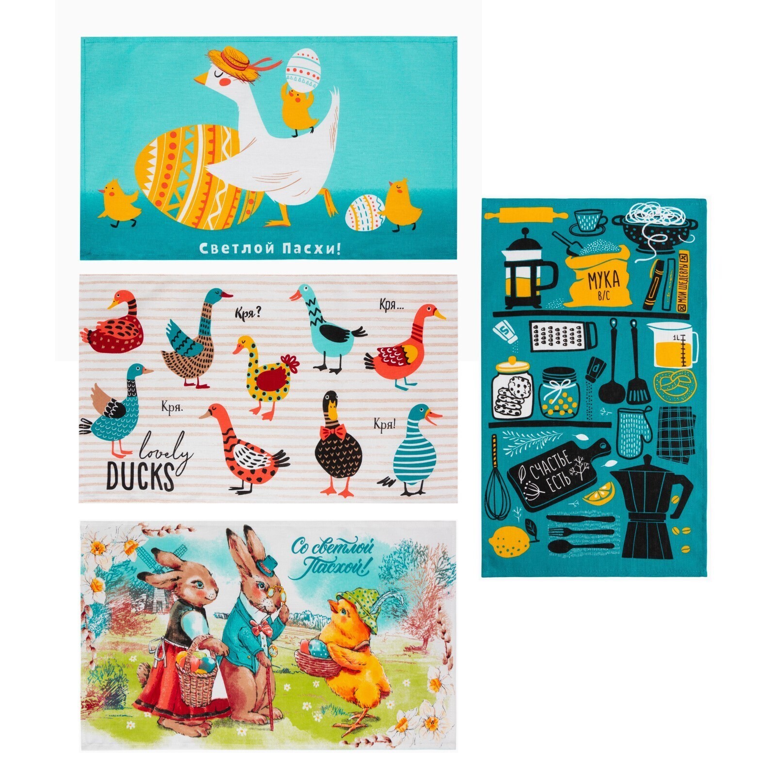 Набор полотенец Доляна "Светлой Пасхи" 35х60 см - 4 шт, 100% хлопок