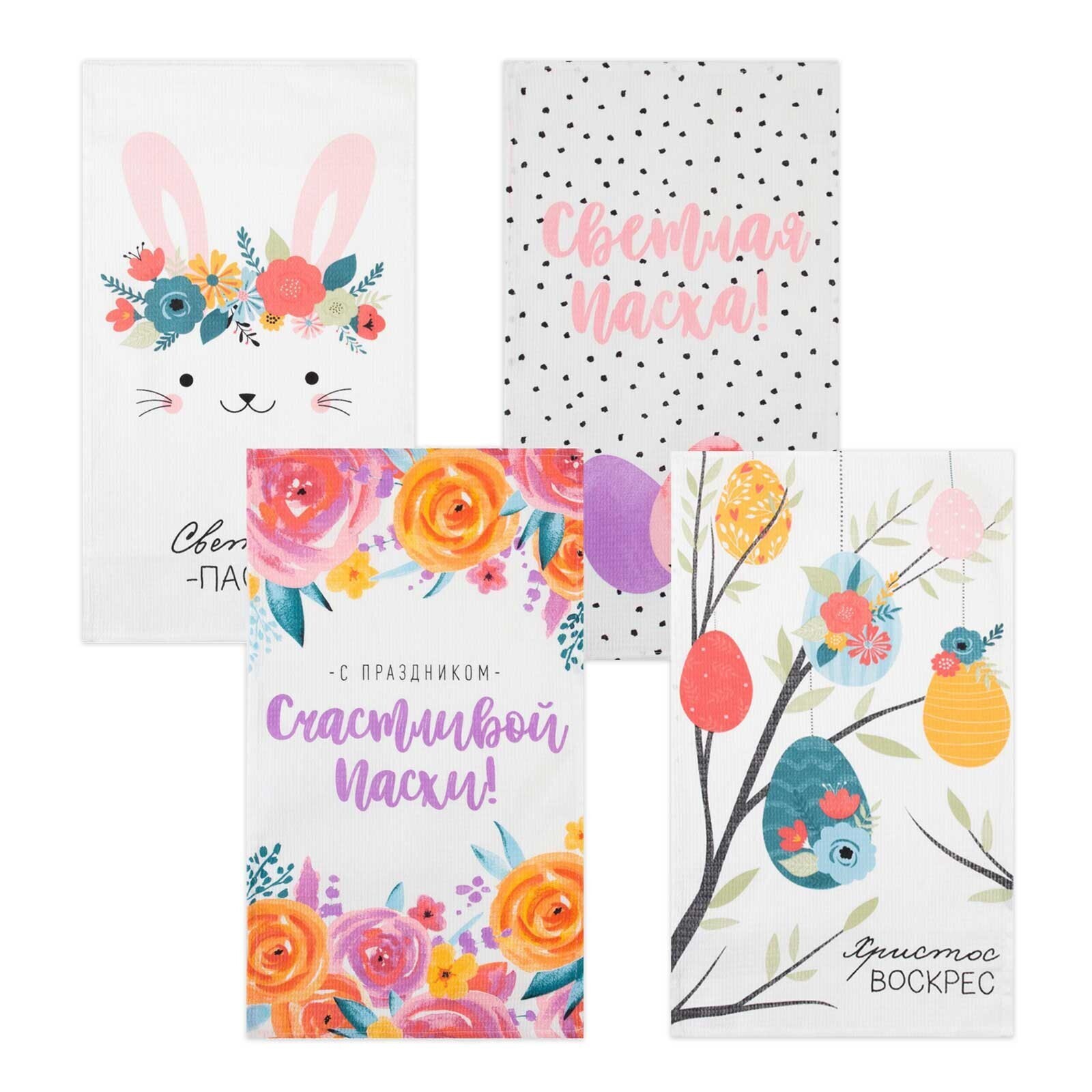 Набор полотенец кухонный Доляна «Пасхальные зайчики» 35х60см-4 шт, 100% хлопок, вафля 160 г/м2