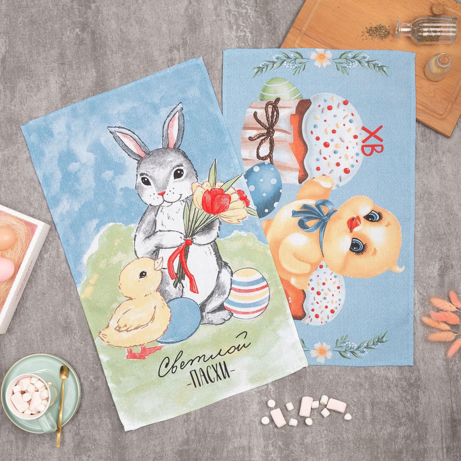 Набор полотенец кухонный Доляна "Светлой Пасхи" 35х60 см - 2 шт, 100% хлопок