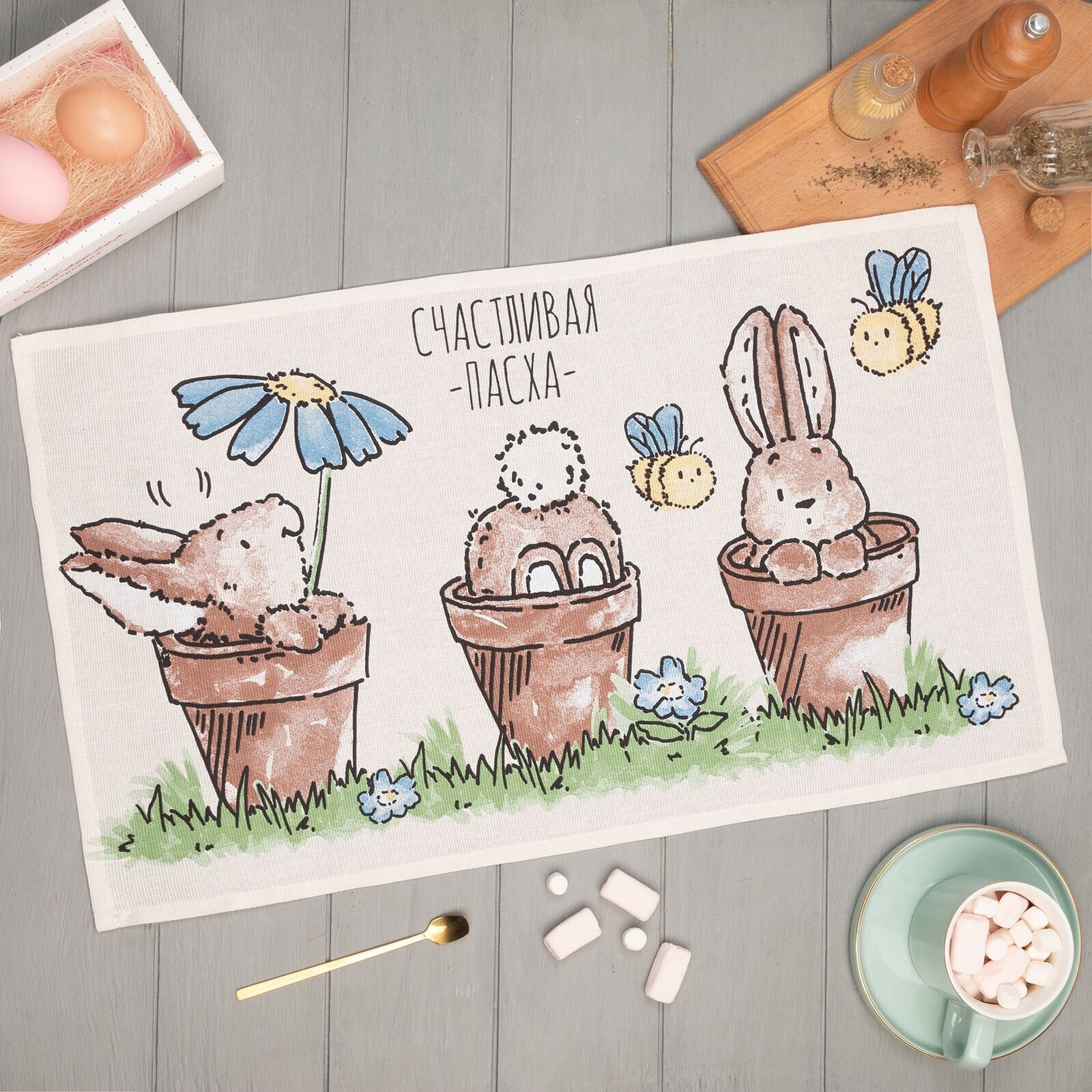 Полотенце Доляна "Озорные зайцы" 35х60 см, 100% хл, рогожка 164 г/м2