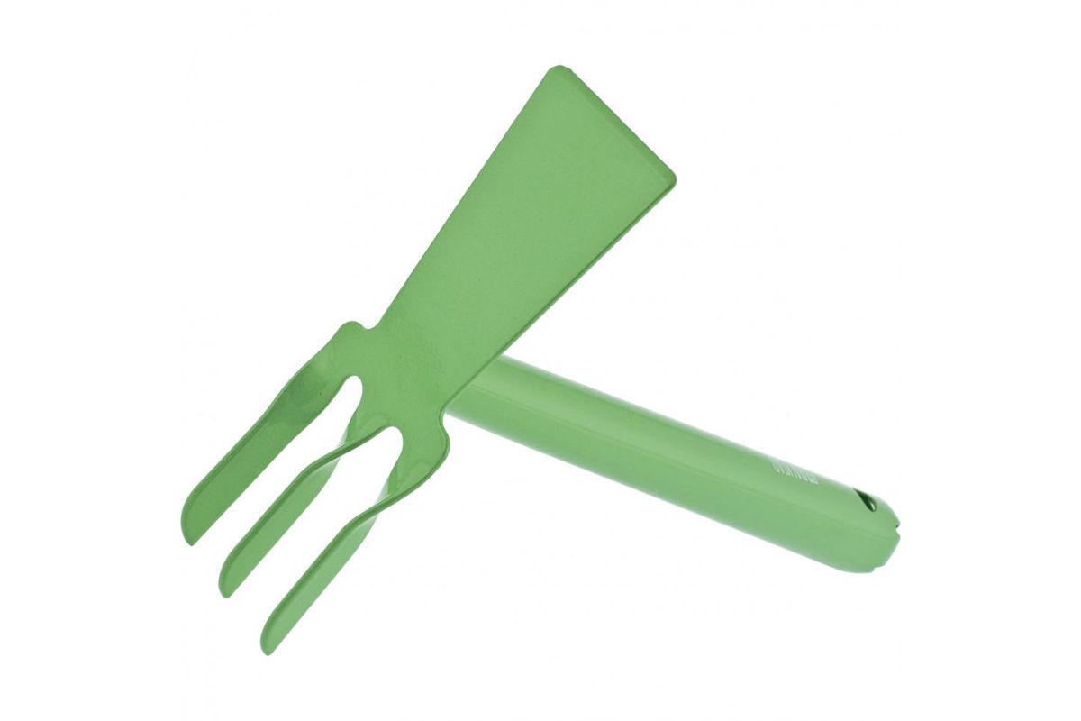 Изготовлен из листовой среднеуглеродистой стали методом штамповки.Благодаря цельнометаллической конструкции инструмент выдерживает работу с плотными почвами.Покрытие порошковой эмалью надежно защищает металл от коррозии.