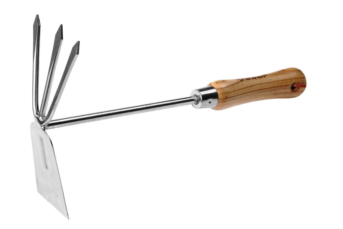 Мотыжка ЗУБР ''ЭКСПЕРТ'' комбинированная из нерж. стали, деревянная ручка из ясеня, прямое лезвие + 3 зубца, 190х80х330мм