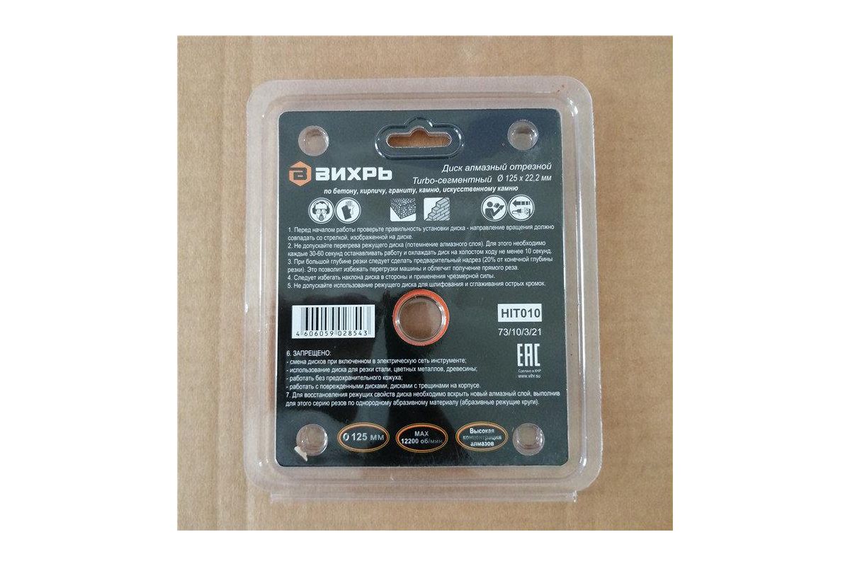 Диск алмазный отрезной ВИХРЬ СТАНДАРТ Турбо сегментный, 125 х 22,2 мм, сухая резка
