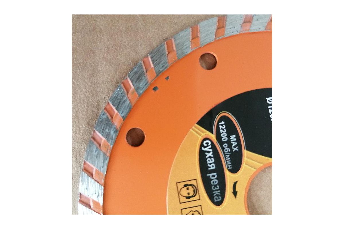Алмазный отрезной диск, который используется совместно с угловыми шлифмашинами (болгарками) для сухой резки гранитных, бетонных, кирпичных и каменных изделий.